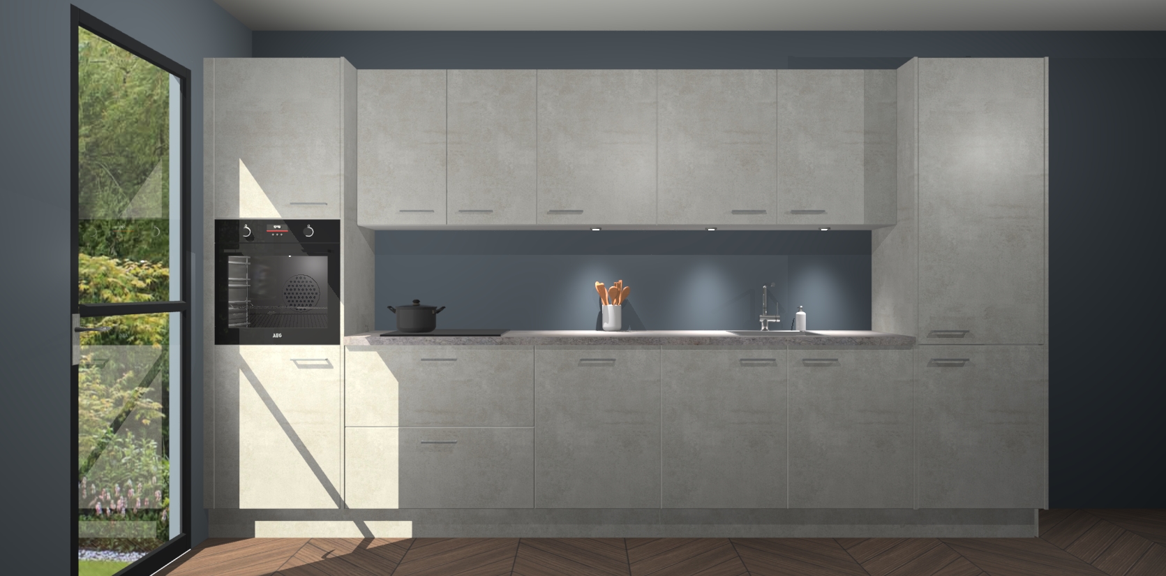 Dit is de perfecte keuken voor wie op zoek is naar een luxueuze stijl zonder zijn portemonnee te legen! Het chique ontwerp van de beton opaal keuken Wels voegt dat vleugje verfijning toe aan elk huis. Het gemak van voorgemonteerde kasten bespaart u talloze uren tijd en energie, zodat u veel sneller dan verwacht kunt beginnen te genieten van uw prachtige nieuwe keuken. Bovendien bedraagt de levertijd slechts 7 weken.