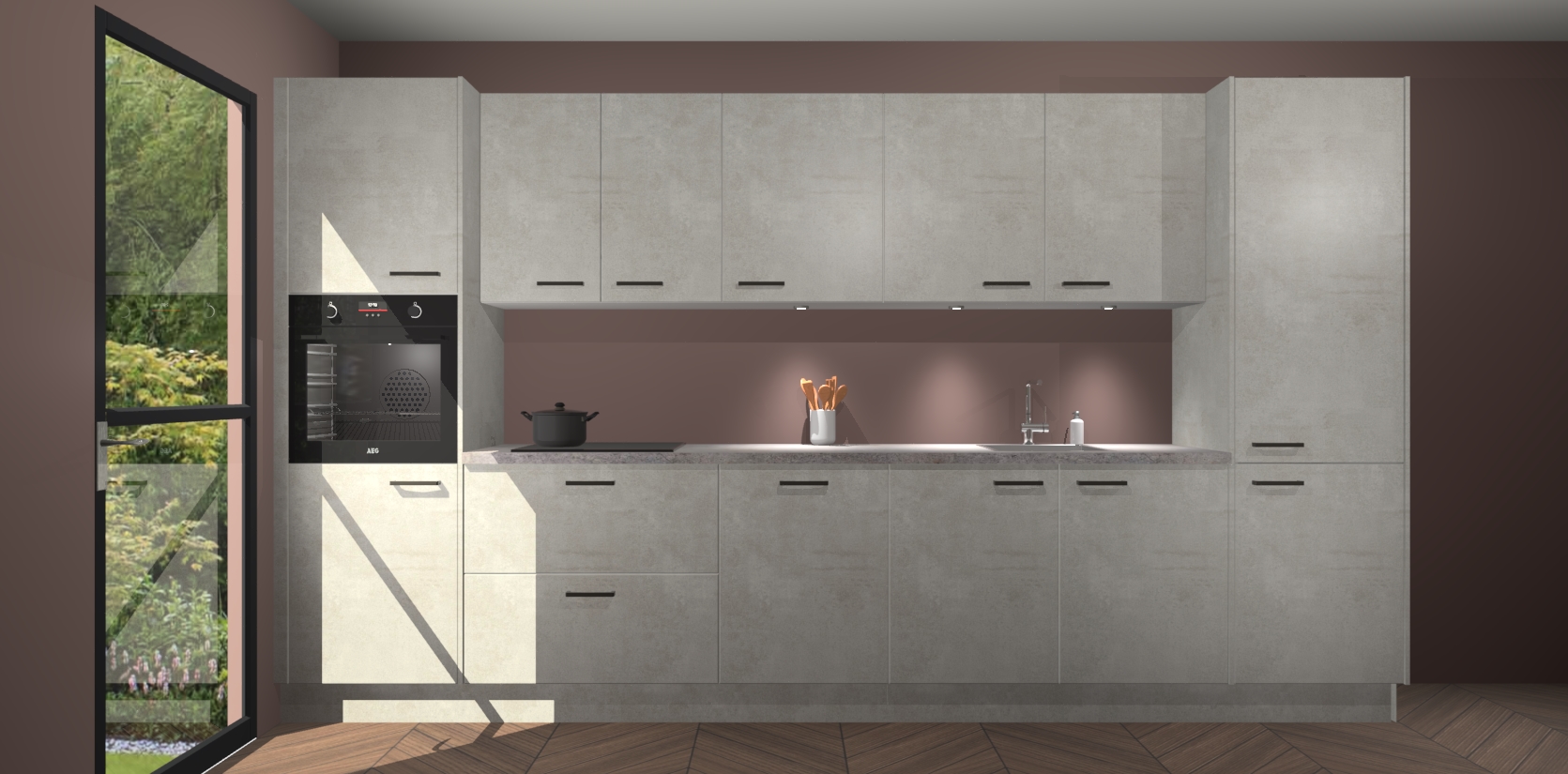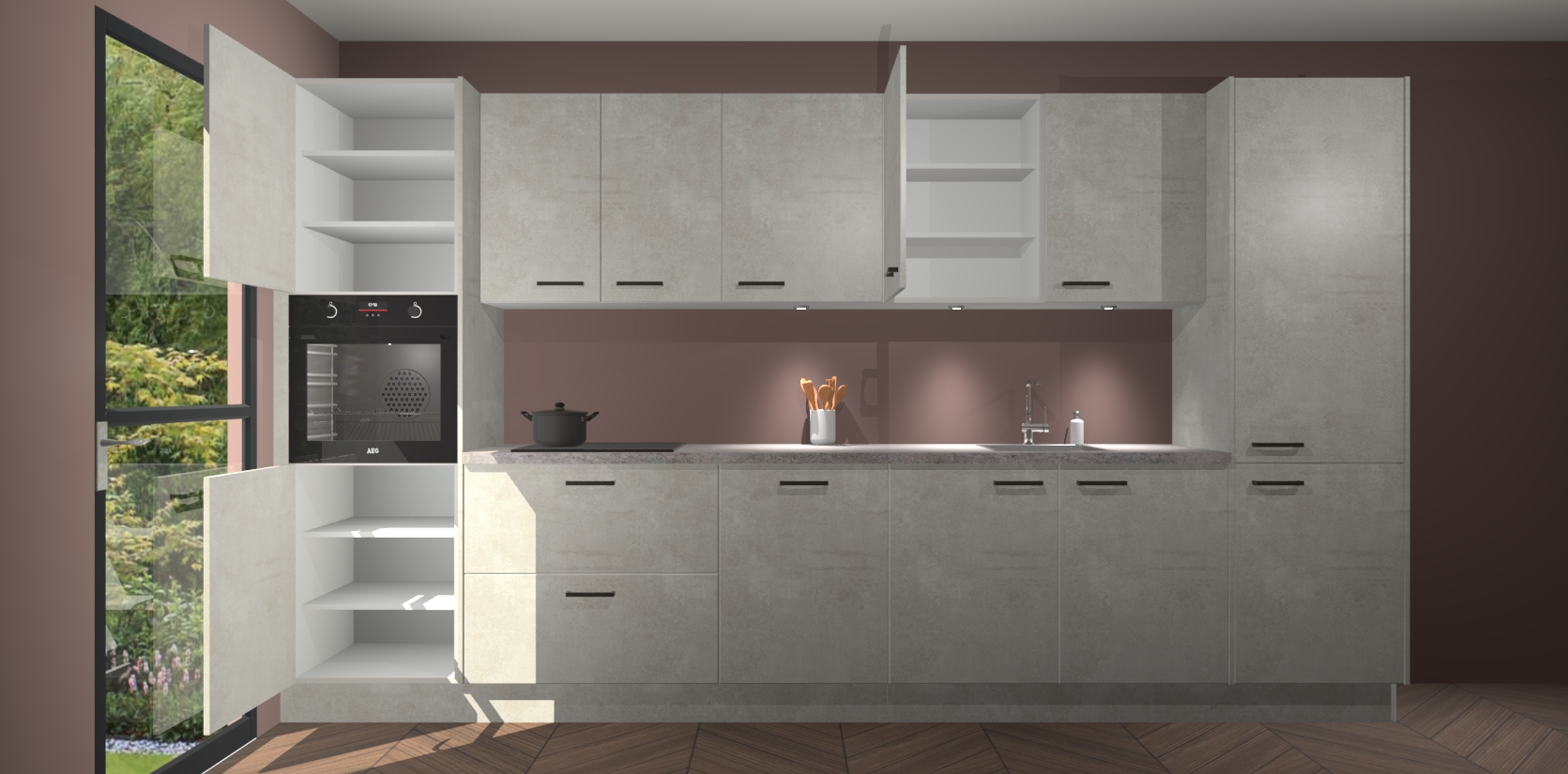 Dit is de perfecte keuken voor wie op zoek is naar een luxueuze stijl zonder zijn portemonnee te legen! Het chique ontwerp van de beton opaal keuken Wels voegt dat vleugje verfijning toe aan elk huis. Het gemak van voorgemonteerde kasten bespaart u talloze uren tijd en energie, zodat u veel sneller dan verwacht kunt beginnen te genieten van uw prachtige nieuwe keuken. Bovendien bedraagt de levertijd slechts 7 weken.