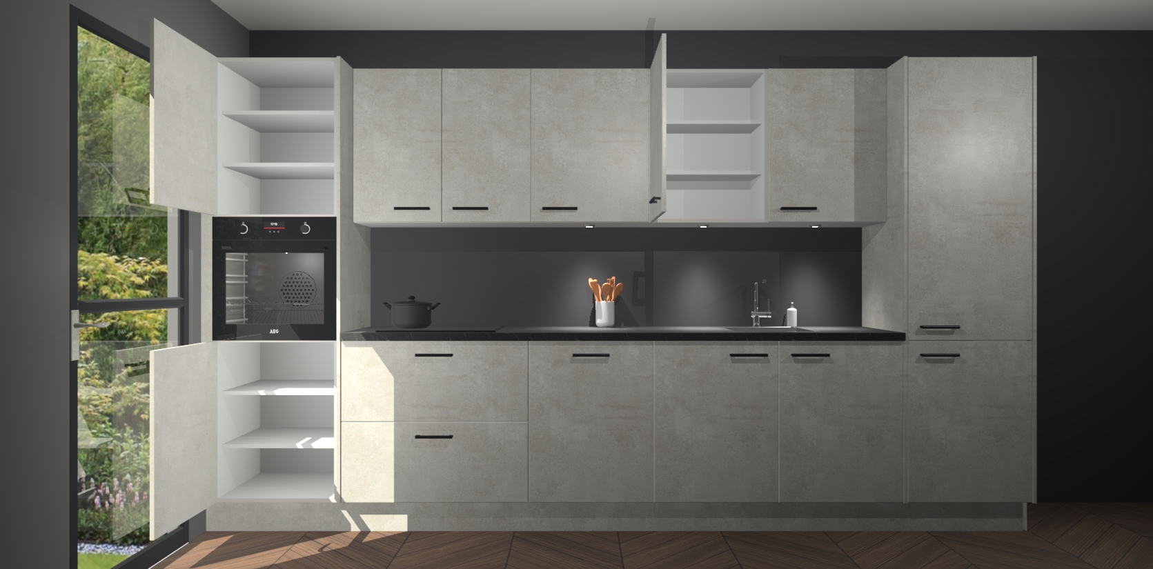 Dit is de perfecte keuken voor wie op zoek is naar een luxueuze stijl zonder zijn portemonnee te legen! Het chique ontwerp van de beton opaal keuken Wels voegt dat vleugje verfijning toe aan elk huis. Het gemak van voorgemonteerde kasten bespaart u talloze uren tijd en energie, zodat u veel sneller dan verwacht kunt beginnen te genieten van uw prachtige nieuwe keuken. Bovendien bedraagt de levertijd slechts 7 weken.