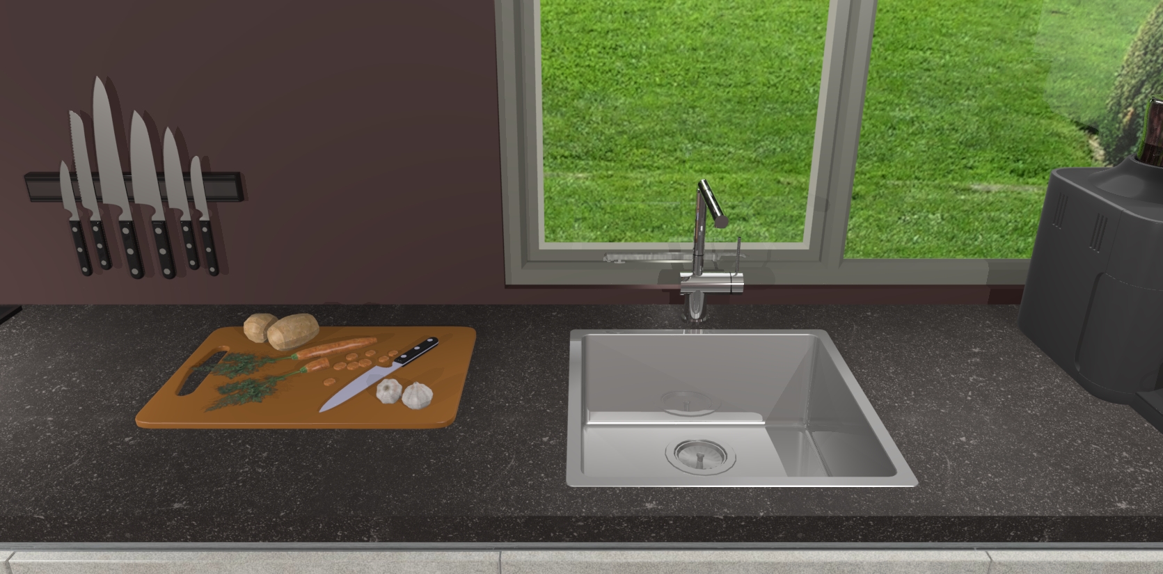 • De spoelbak is nog niet in gevreesd. Dit dient tijdens het werk gedaan te worden