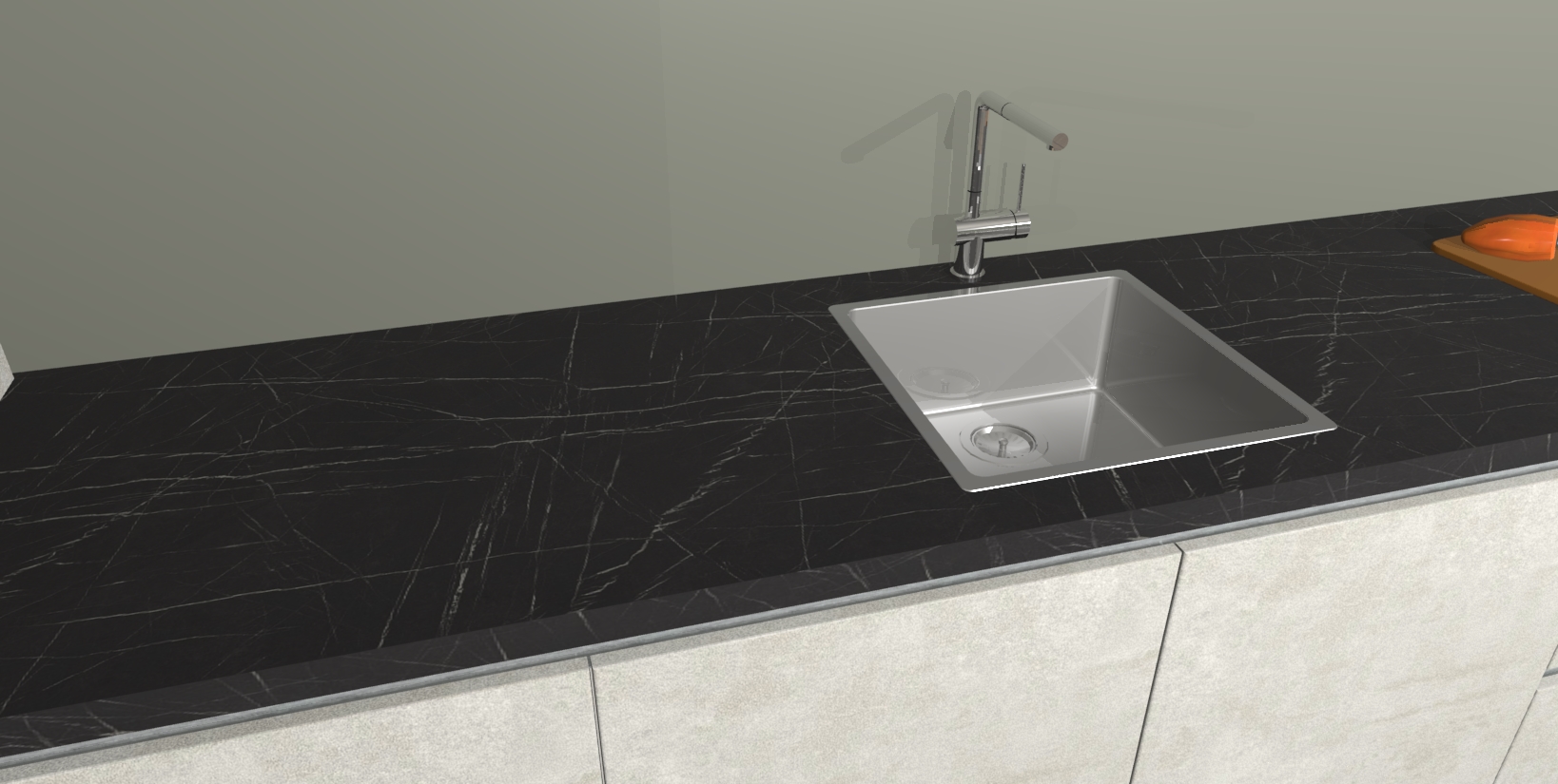 • De spoelbak is nog niet in gevreesd. Dit dient tijdens het werk gedaan te worden