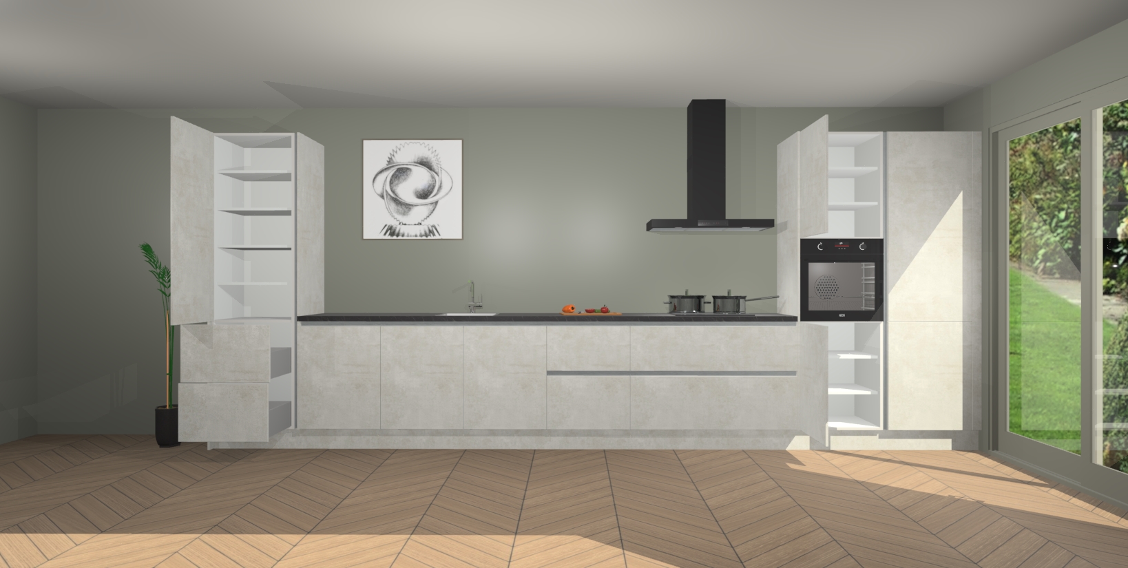 De Beton Opal greeploze keuken Barentsburg is de perfecte combinatie van stijl en functionaliteit. Het strakke design geeft uw keuken een moderne look die jarenlang meegaat. Bovendien zorgen onze deuren met softclose voor extra gebruiksgemak en gemoedsrust.