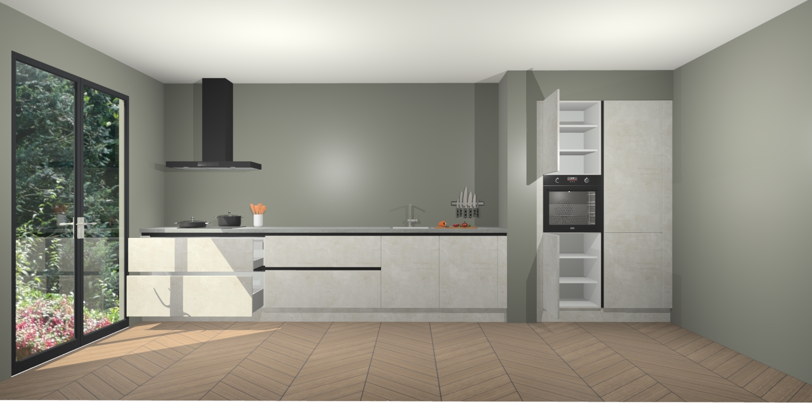 Maak kennis met de Beton Opal greeploze keuken Calgary - de perfecte aanvulling voor uw moderne keuken! Ervaar tijdloos design, elegantie en een chique uitstraling met onze handgrepen, soft-close deuren en veel opbergruimte. Dit alles wordt aangeboden tegen een vaste lage prijs voor ongeëvenaarde Duitse keukenkwaliteit!