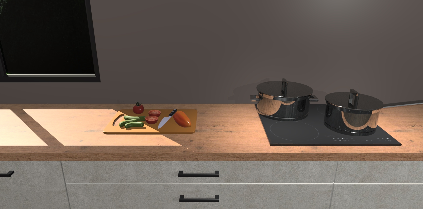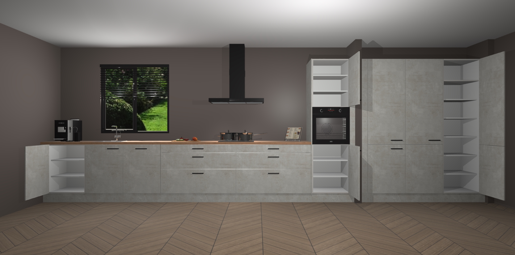 Een stijlvolle en praktische keuken als deze mag gezien worden. Dankzij de prachtige matte afwerking wordt de keuken gemakkelijk het middelpunt van uw huis - hij ziet er geweldig uit onder allerlei lichtomstandigheden, van dag tot nacht!