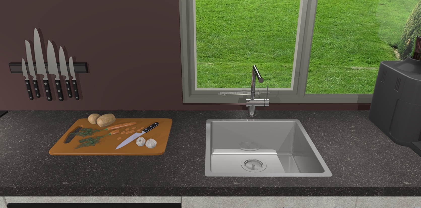 - De spoelbak is nog niet in gevreesd. Dit dient tijdens het werk gedaan te worden