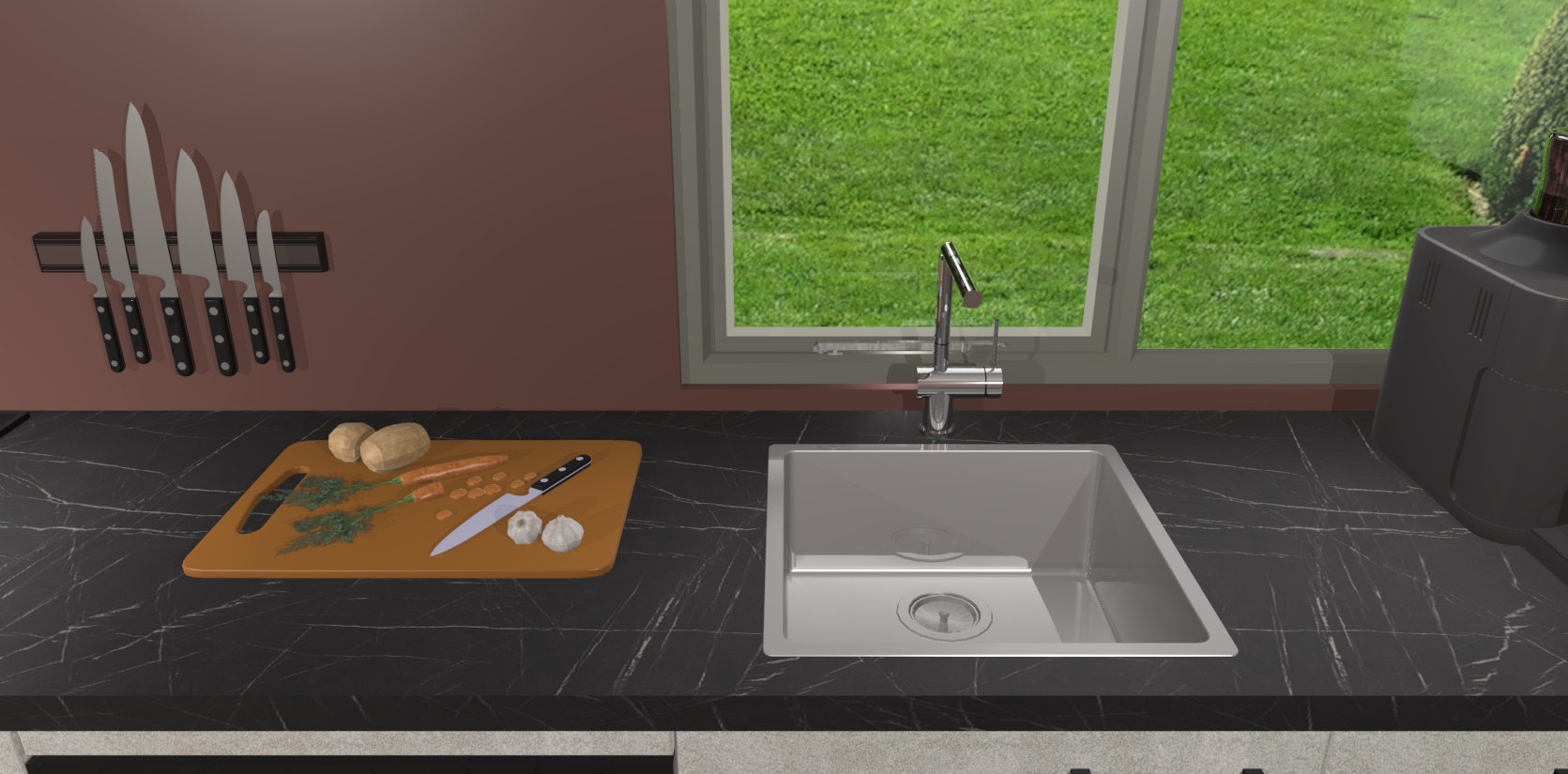 - De spoelbak is nog niet in gevreesd. Dit dient tijdens het werk gedaan te worden