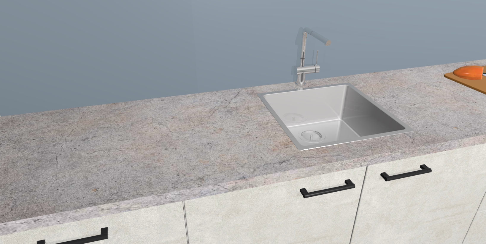 - De spoelbak is nog niet in gevreesd. Dit dient tijdens het werk gedaan te worden