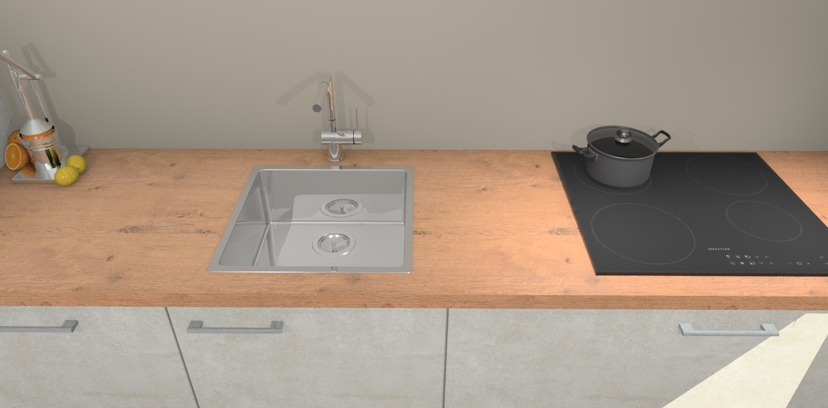 Inclusief plinten, stelpoten en werkblad