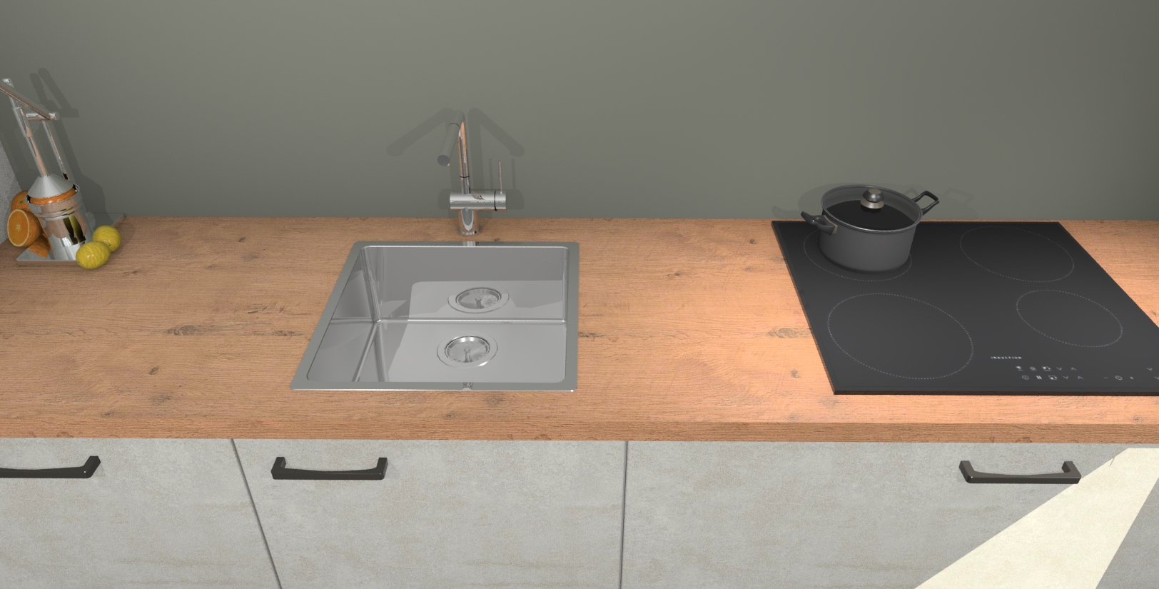 - Uitsparing van kookplaat, spoelbak en kraan dient u zelf te verzorgen.