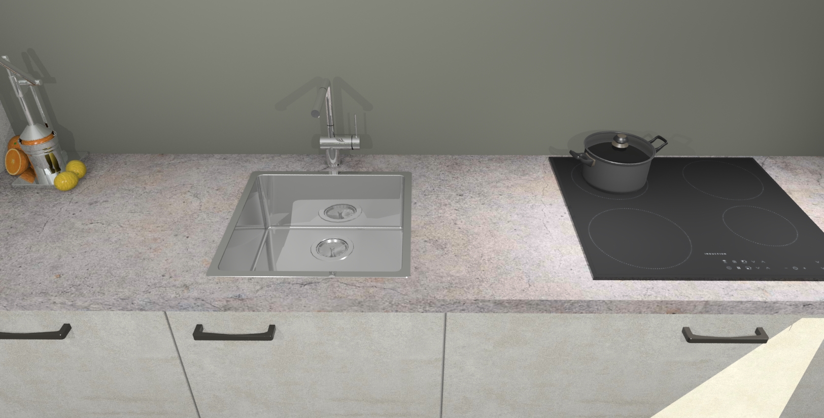 - Uitsparing van kookplaat, spoelbak en kraan dient u zelf te verzorgen.