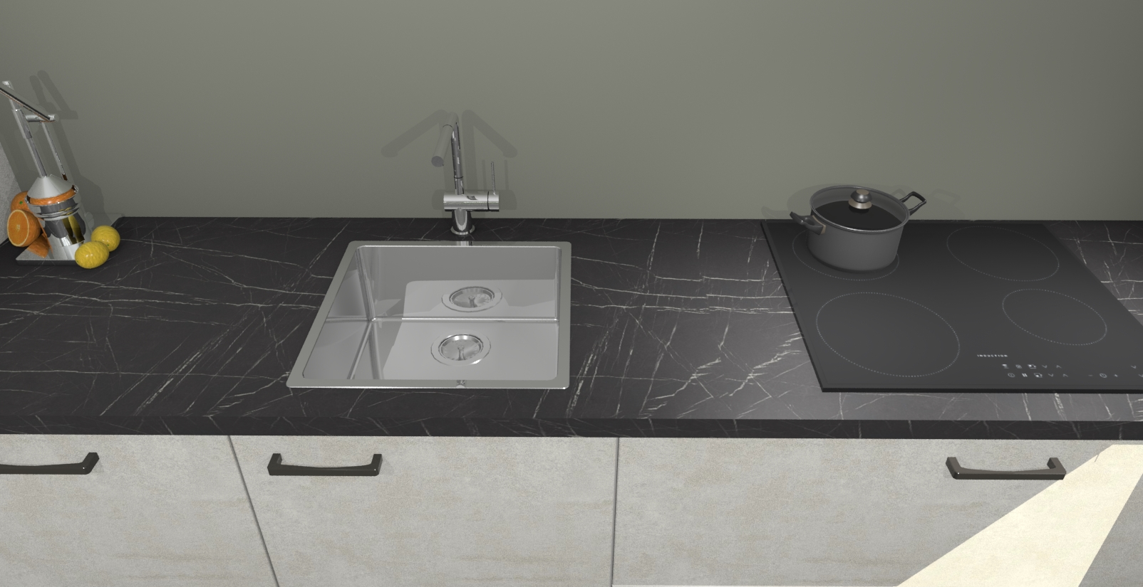- Uitsparing van kookplaat, spoelbak en kraan dient u zelf te verzorgen.