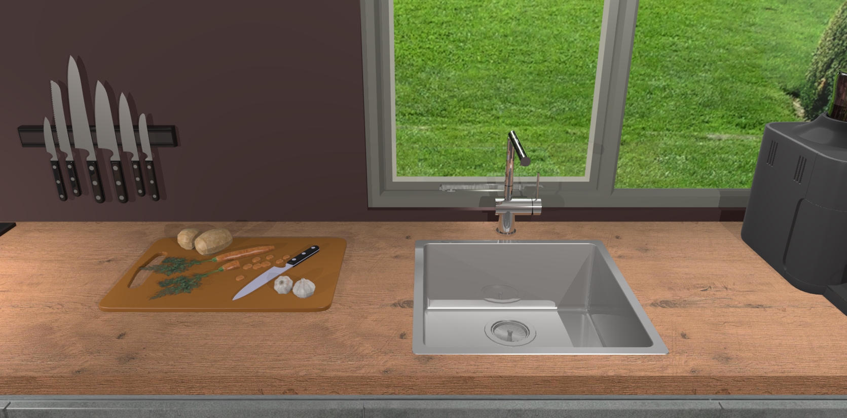 - De spoelbak is nog niet in gevreesd. Dit dient tijdens het werk gedaan te worden
