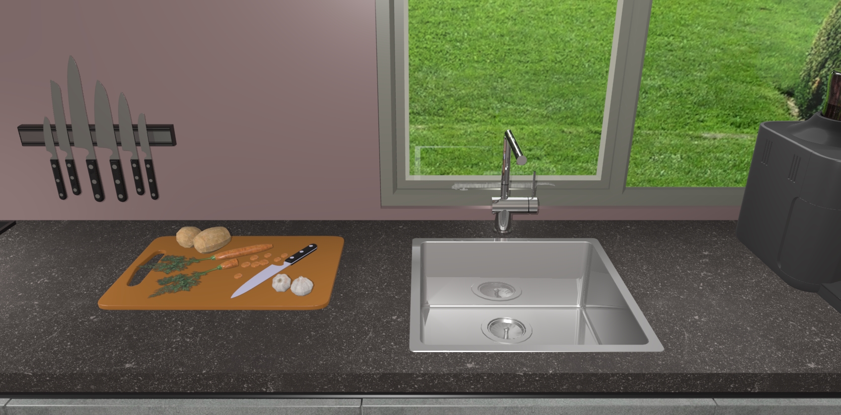 - De spoelbak is nog niet in gevreesd. Dit dient tijdens het werk gedaan te worden