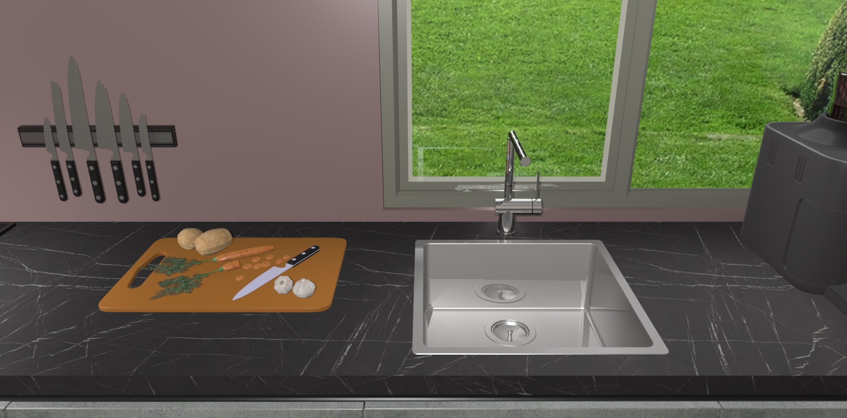 - De spoelbak is nog niet in gevreesd. Dit dient tijdens het werk gedaan te worden