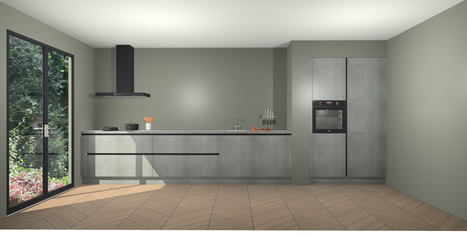 Maak kennis met de Beton Parelgrijs greeploze keuken Calgary - de perfecte aanvulling voor uw moderne keuken! Ervaar tijdloos design, elegantie en een chique uitstraling met onze handgrepen, soft-close deuren en veel opbergruimte. Dit alles wordt aangeboden tegen een vaste lage prijs voor ongeëvenaarde Duitse keukenkwaliteit!