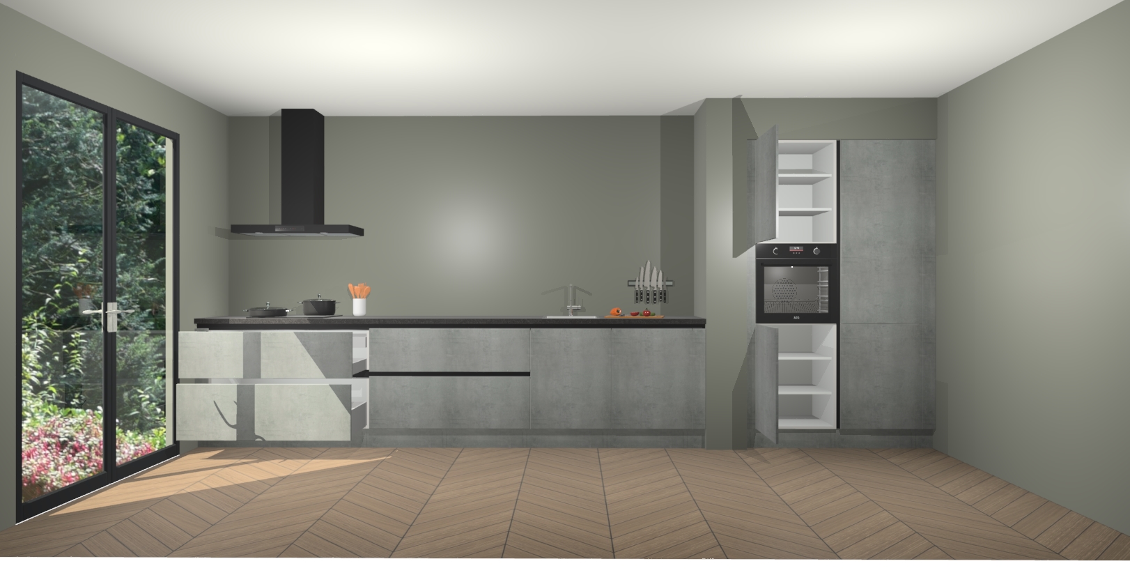 Met de Beton Parelgrijs greeploze keuken Calgary Maakt u van uw keuken het pronkstuk van uw huis. Stijlvol en toch praktisch, de nieuwste look voor wie meer waarde en charme aan zijn huis wil toevoegen. Met prachtige handgrepen die zich lenen voor een klassieke stijlbron, zal u niet teleurgesteld zijn in het resultaat. De soft-close deurscharnieren geven een gevoel van luxe omdat ze zachtjes bewegen zonder storende of krakende geluiden te veroorzaken.