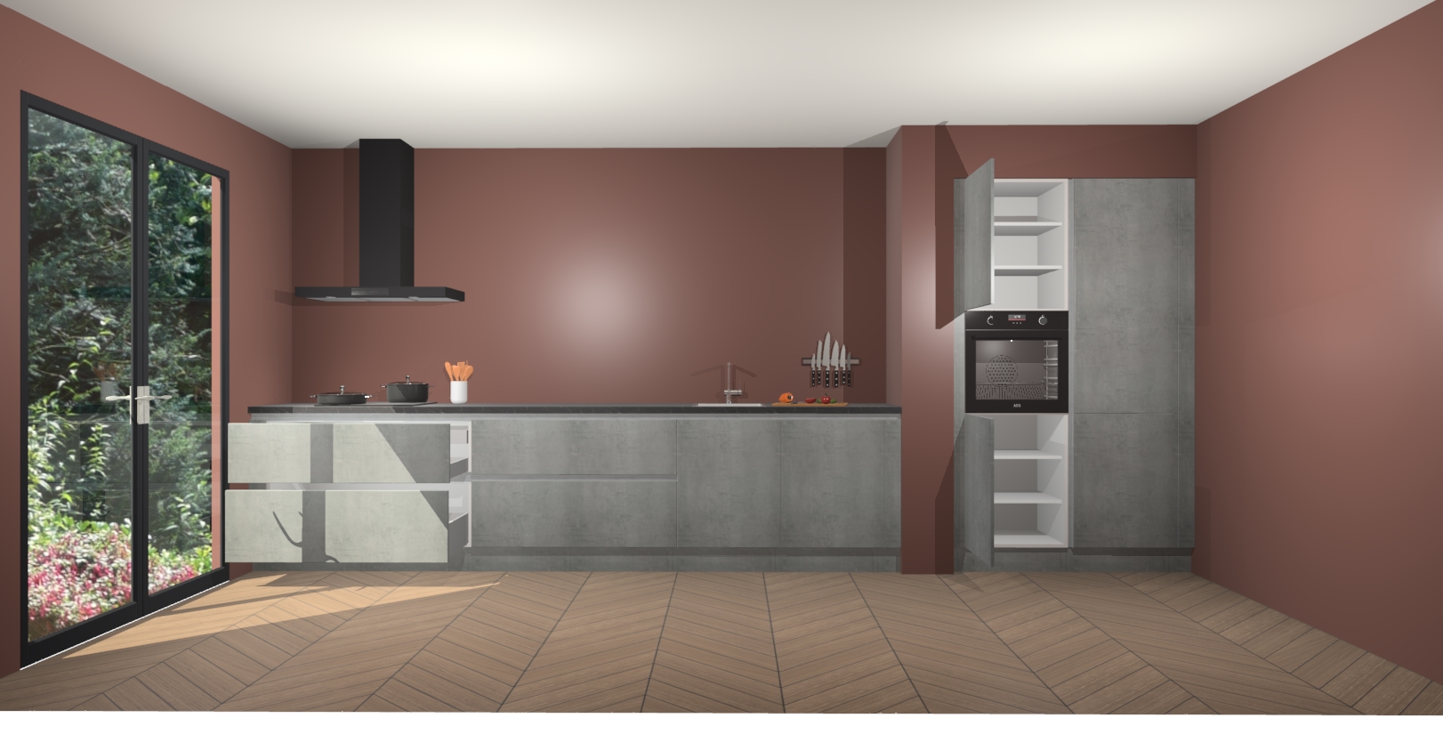 Met de Beton Parelgrijs greeploze keuken Calgary Maakt u van uw keuken het pronkstuk van uw huis. Stijlvol en toch praktisch, de nieuwste look voor wie meer waarde en charme aan zijn huis wil toevoegen. Met prachtige handgrepen die zich lenen voor een klassieke stijlbron, zal u niet teleurgesteld zijn in het resultaat. De soft-close deurscharnieren geven een gevoel van luxe omdat ze zachtjes bewegen zonder storende of krakende geluiden te veroorzaken.