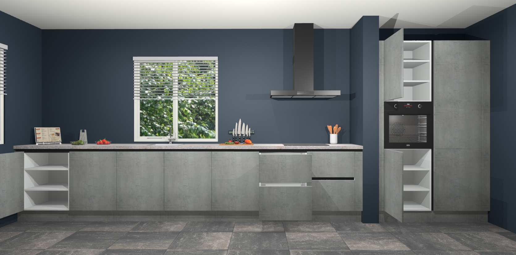 Maak kennis met de Beton parelgrijs keuken Elzas - de perfecte aanvulling voor uw moderne keuken! Ervaar tijdloos design, elegantie en een chique uitstraling met onze handgrepen, soft-close deuren en veel opbergruimte. Dit alles wordt aangeboden tegen een vaste lage prijs voor ongeëvenaarde Duitse keukenkwaliteit!