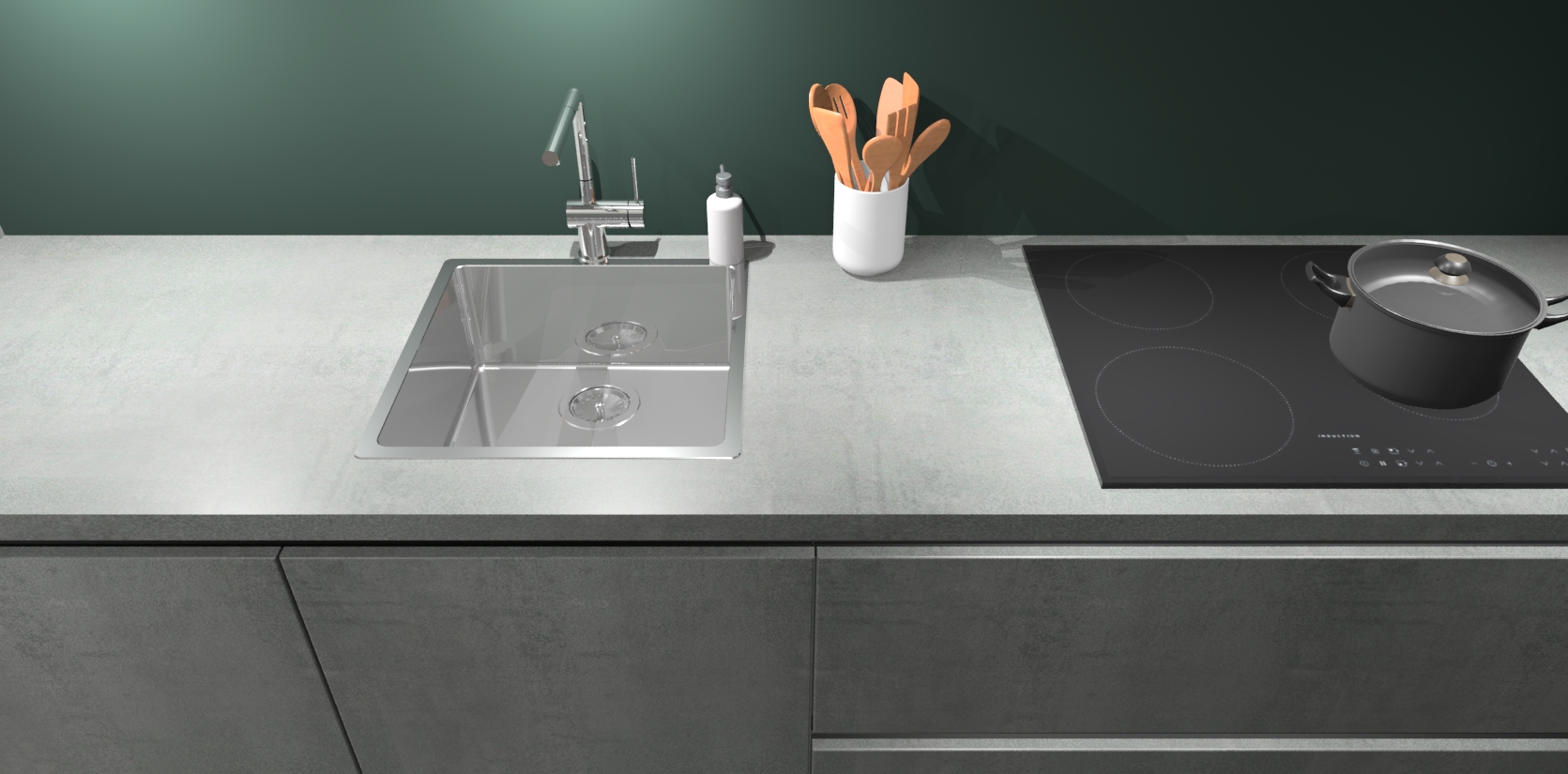 - Uitsparing van kookplaat, spoelbak en kraan dient u zelf te verzorgen.