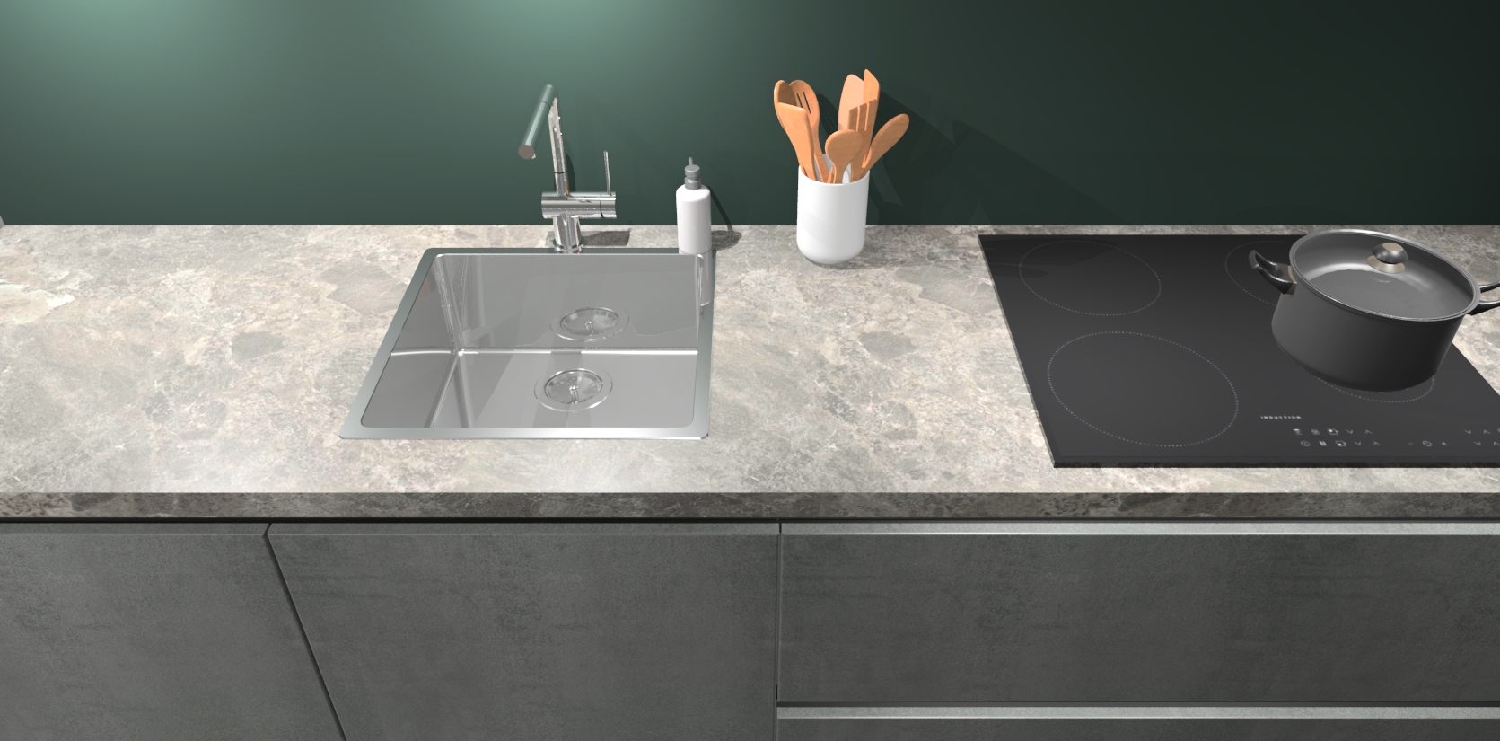 - Uitsparing van kookplaat, spoelbak en kraan dient u zelf te verzorgen.