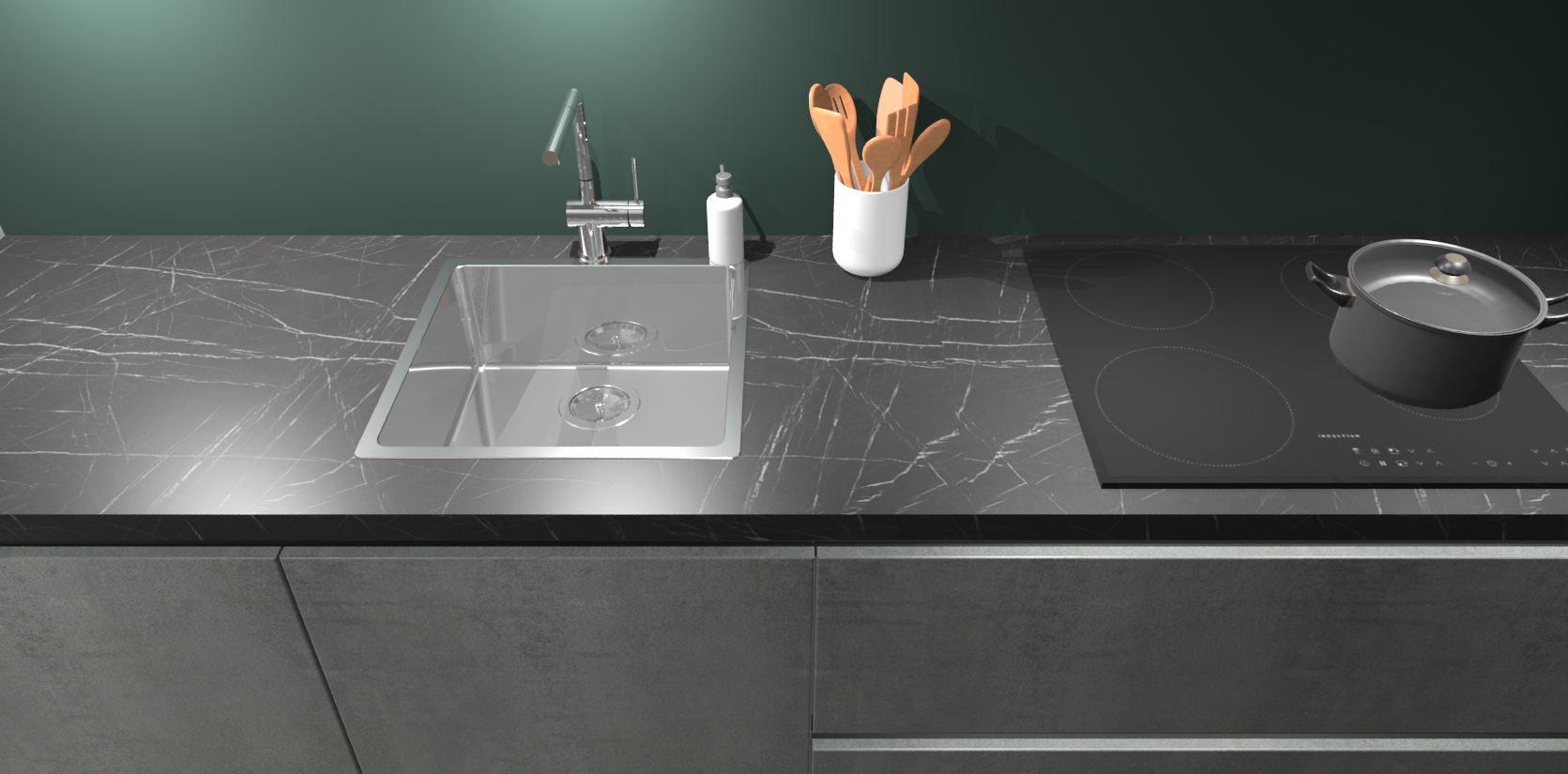 - Bij een hoekwerkblad zijn de hoeken in gevreesd en op maat gemaakt