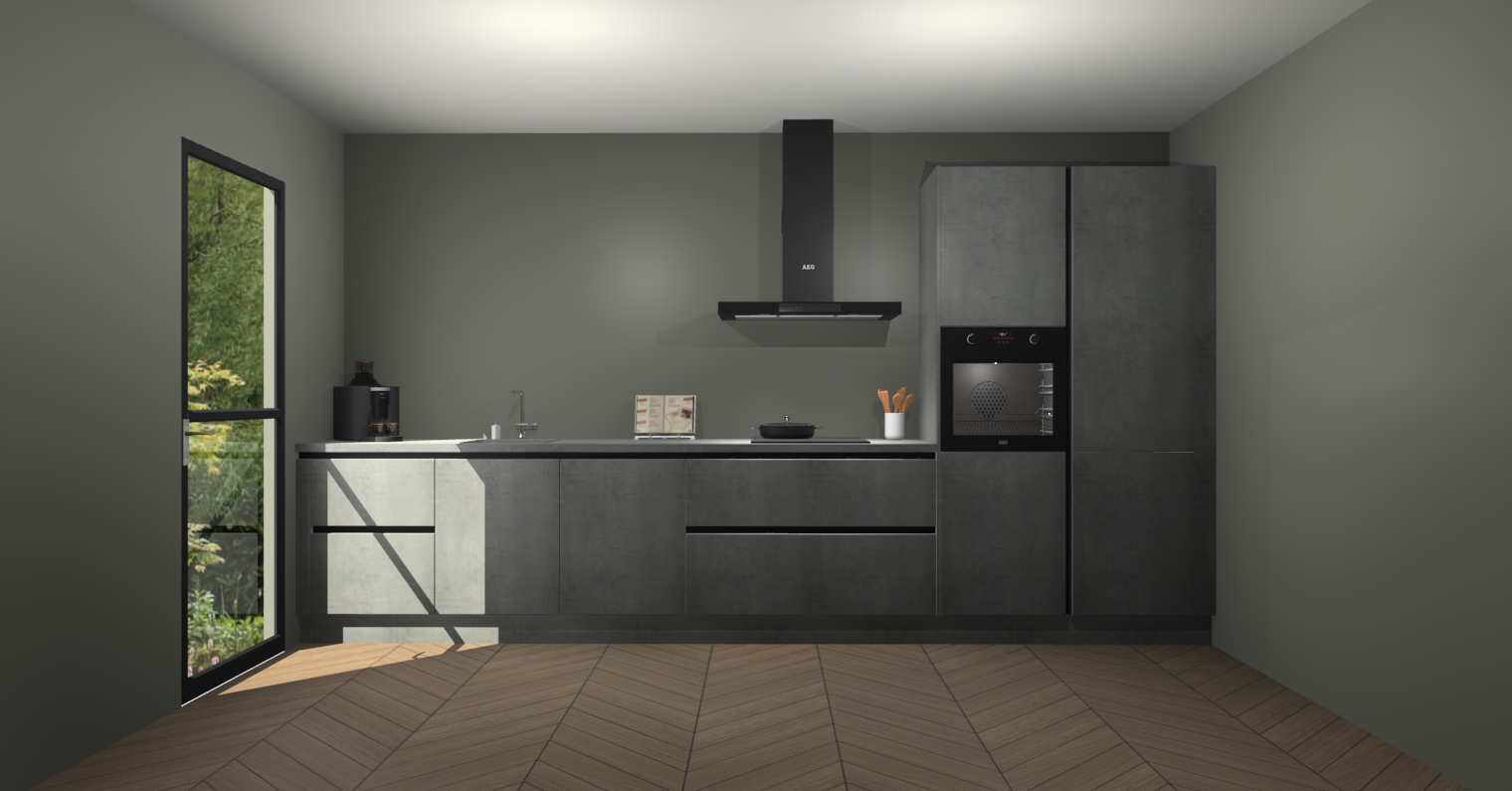 De Beton Parelgrijs greeploze keuken Leuven is de perfecte mix van modern en tijdloos design. Met zijn prachtige glazen deuren op de bovenkastjes voegt hij echt iets speciaals en unieks toe aan elke keuken. En met vijf ingebouwde apparaten inbegrepen - een oven, inductiekookplaat, afzuigkap, vaatwasser en koelkast - kunt u deze keuken echt helemaal van uzelf maken! U kunt na bestelling ook upgraden naar AEG voor een nog hogere kwaliteitservaring.