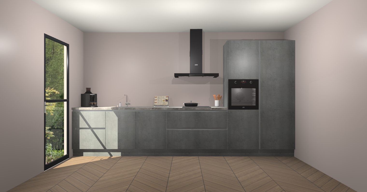 De Beton Parelgrijs greeploze keuken Leuven is de perfecte mix van modern en tijdloos design. Met zijn prachtige glazen deuren op de bovenkastjes voegt hij echt iets speciaals en unieks toe aan elke keuken. En met vijf ingebouwde apparaten inbegrepen - een oven, inductiekookplaat, afzuigkap, vaatwasser en koelkast - kunt u deze keuken echt helemaal van uzelf maken! U kunt na bestelling ook upgraden naar AEG voor een nog hogere kwaliteitservaring.