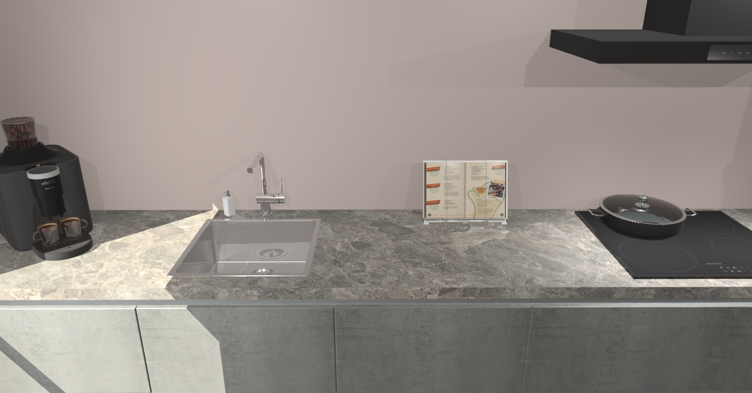• De spoelbak is nog niet in gevreesd, dit dient tijdens het werk gedaan te worden
