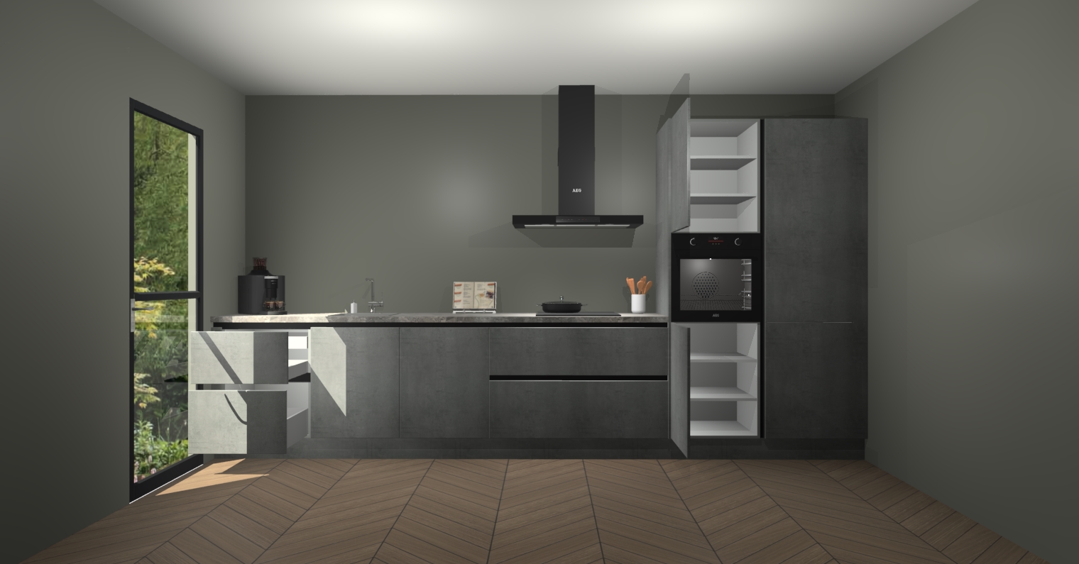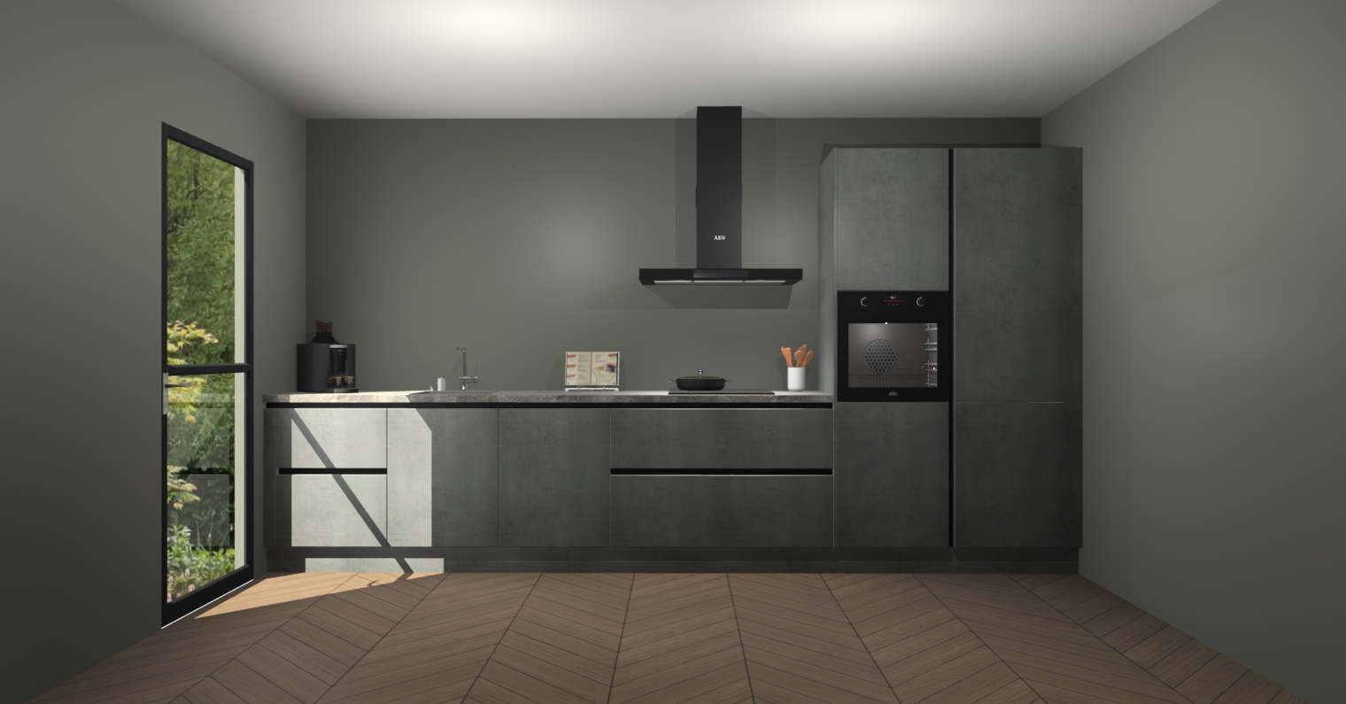 De Beton Parelgrijs greeploze keuken Leuven is de perfecte mix van modern en tijdloos design. Met zijn prachtige glazen deuren op de bovenkastjes voegt hij echt iets speciaals en unieks toe aan elke keuken. En met vijf ingebouwde apparaten inbegrepen - een oven, inductiekookplaat, afzuigkap, vaatwasser en koelkast - kunt u deze keuken echt helemaal van uzelf maken! U kunt na bestelling ook upgraden naar AEG voor een nog hogere kwaliteitservaring.
