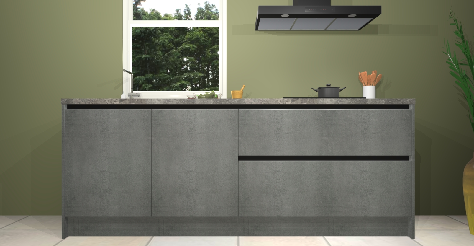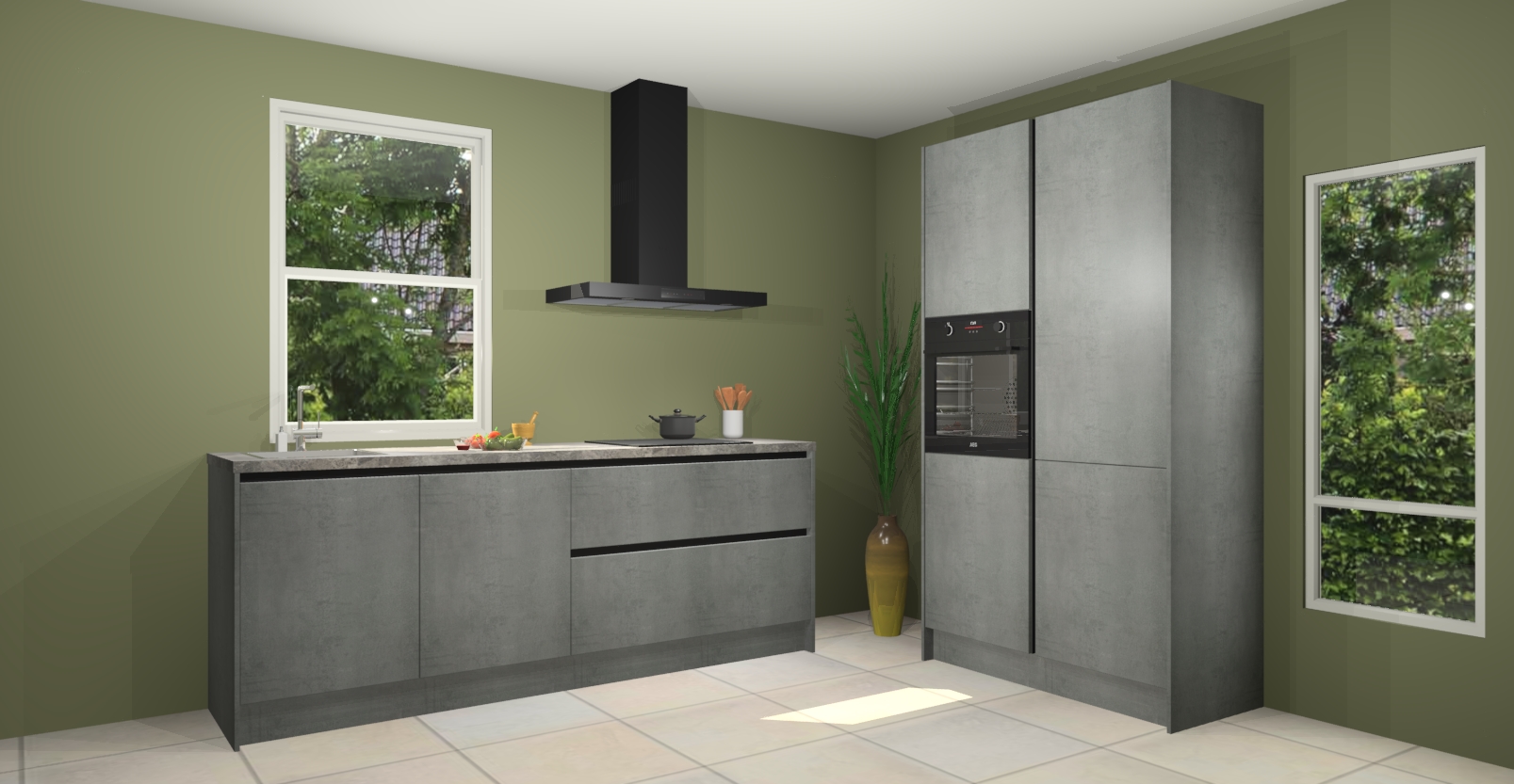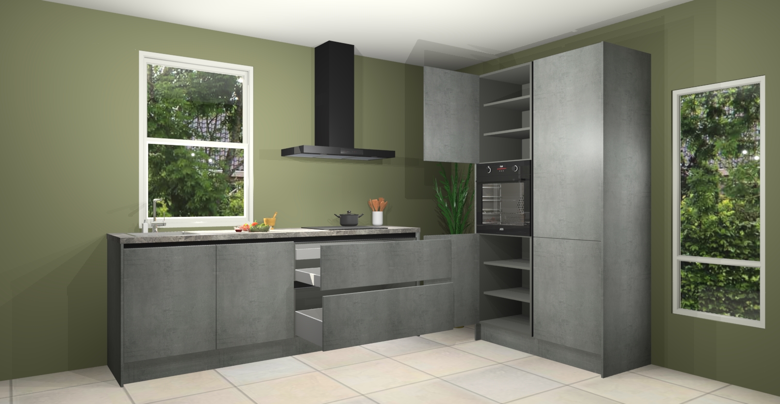 De Beton parelgrijs greeploze keuken Monaco heeft voldoende opbergruimte om uw keukenbenodigdheden georganiseerd en netjes te houden. Geniet van het gemak van de soft-close deuren, die deze stijlvolle look perfect afmaken. Maar dat is nog niet alles. Met de Beton parelgrijs greeploze keuken Monaco krijgt u maar liefst 5 ingebouwde apparaten: een oven, inductiekookplaat, afzuigkap, vaatwasser en koelkast. Deze kunnen gemakkelijk worden geüpgraded naar AEG als ze besteld zijn.