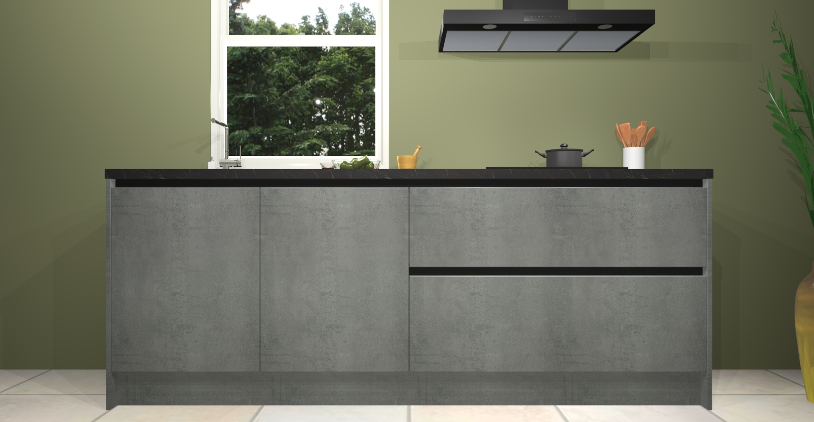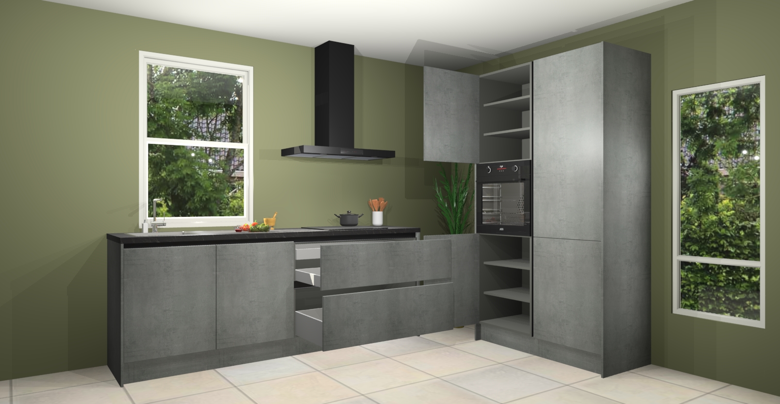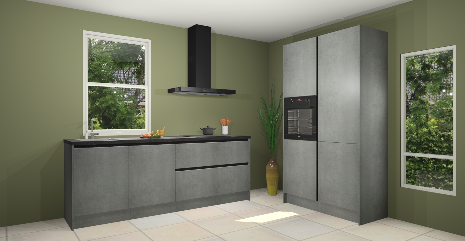 De Beton parelgrijs greeploze keuken Monaco heeft voldoende opbergruimte om uw keukenbenodigdheden georganiseerd en netjes te houden. Geniet van het gemak van de soft-close deuren, die deze stijlvolle look perfect afmaken. Maar dat is nog niet alles. Met de Beton parelgrijs greeploze keuken Monaco krijgt u maar liefst 5 ingebouwde apparaten: een oven, inductiekookplaat, afzuigkap, vaatwasser en koelkast. Deze kunnen gemakkelijk worden geüpgraded naar AEG als ze besteld zijn.
