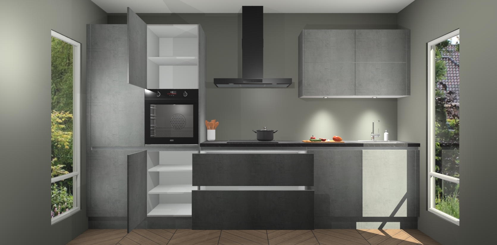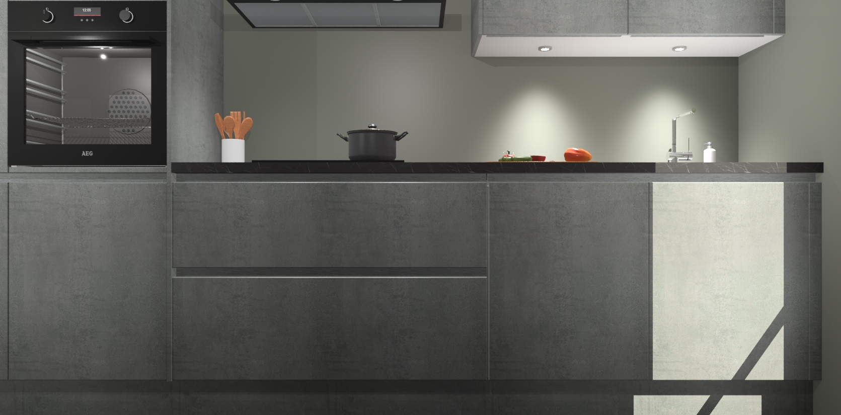Maak kennis met de nieuwe Beton Parelgrijs greeploze Keuken Parijs - de perfecte designcombinatie van gemak, moderne elegantie en ultramodern design. Met een gemakkelijk te reinigen Beton Parelgrijs afwerking, zal de slankheid van deze keuken zeker een vleugje luxe toevoegen aan elke ruimte die hij inneemt.