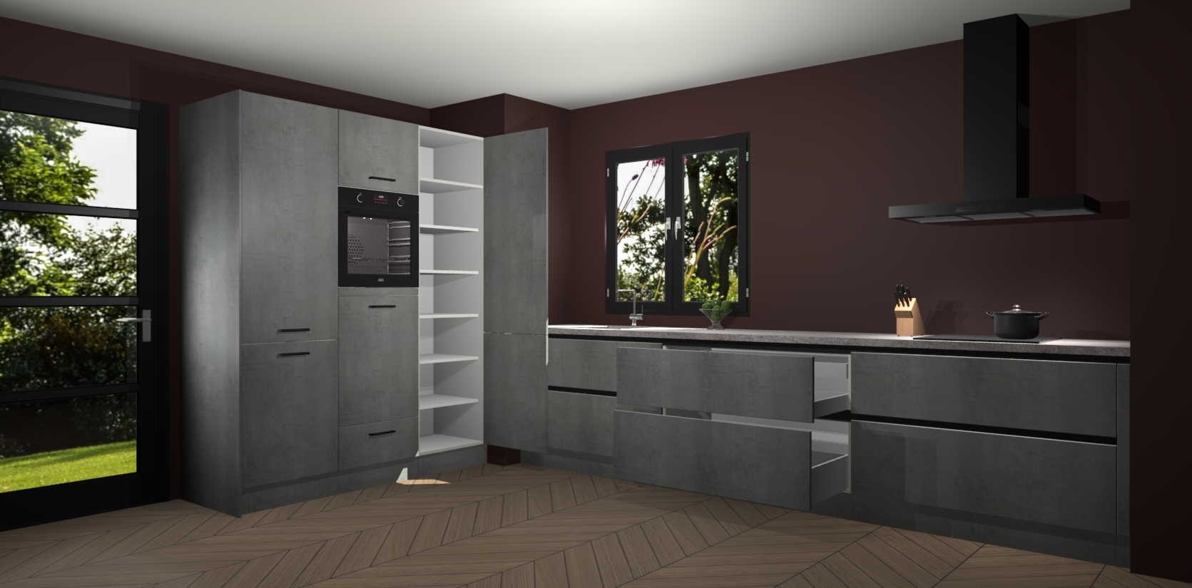 De softclose deuren openen en sluiten is ook heel eenvoudig - geniet van een moeiteloze keukenervaring, zelfs als er kinderen rondlopen. Voor extra gemak bij het plaatsen van uw bestelling bieden we ook een upgrade naar een kookplaat met geïntegreerde afzuiging.