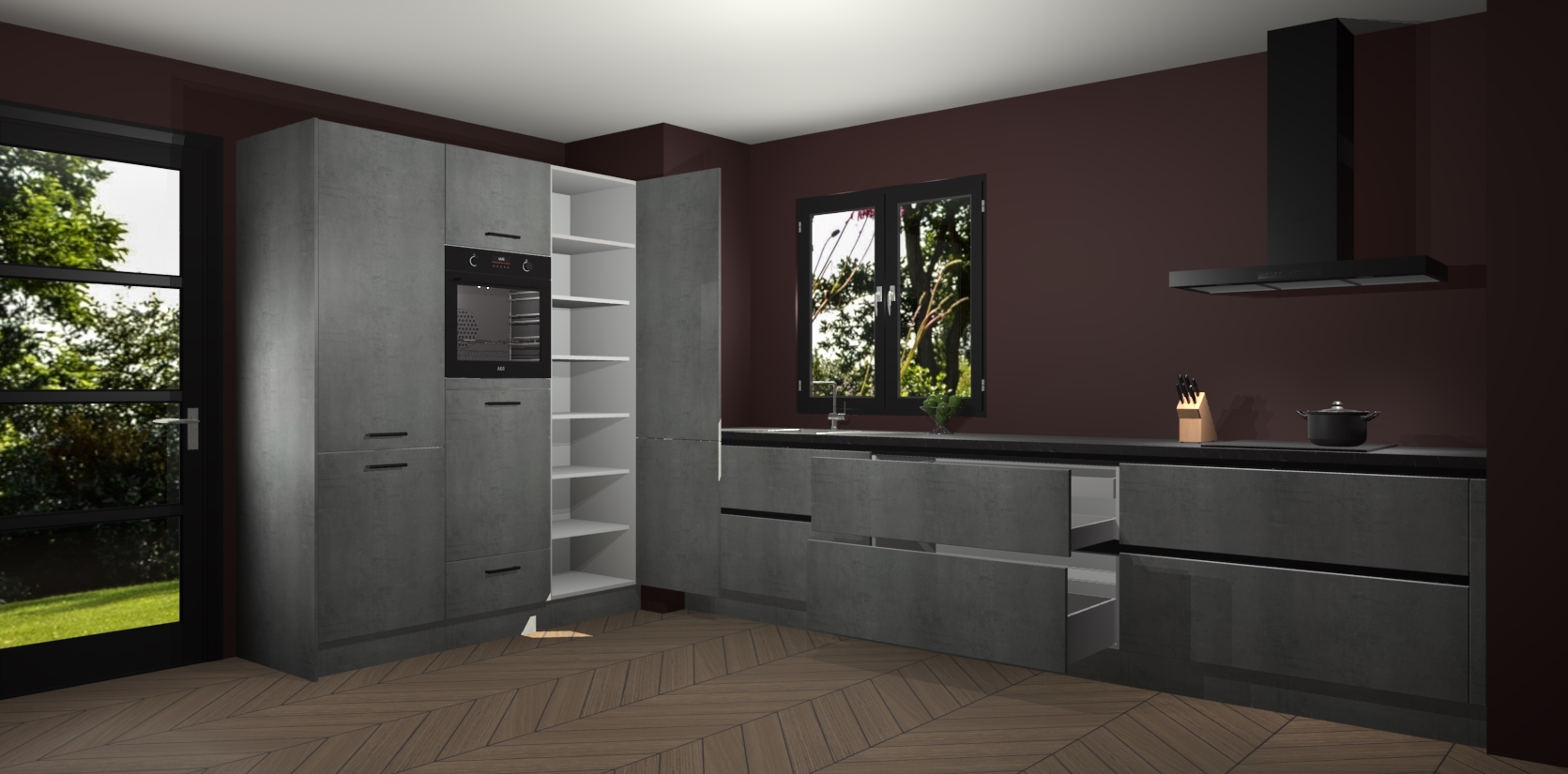 De softclose deuren openen en sluiten is ook heel eenvoudig - geniet van een moeiteloze keukenervaring, zelfs als er kinderen rondlopen. Voor extra gemak bij het plaatsen van uw bestelling bieden we ook een upgrade naar een kookplaat met geïntegreerde afzuiging.