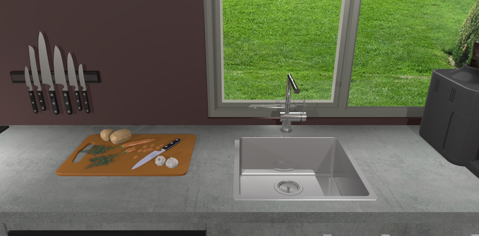 - De spoelbak is nog niet in gevreesd. Dit dient tijdens het werk gedaan te worden