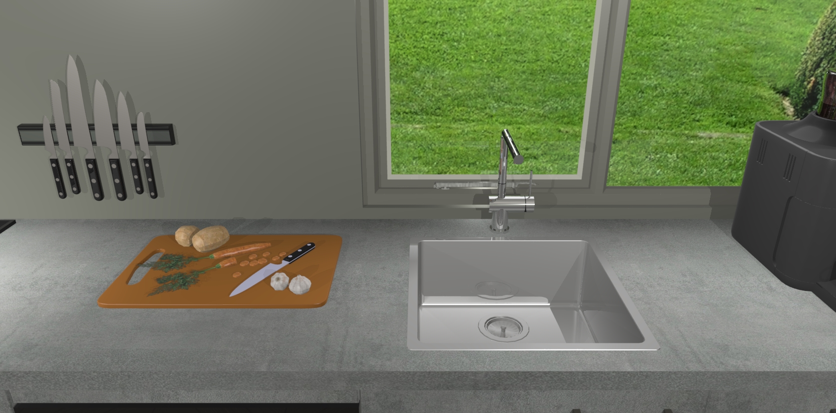 - De spoelbak is nog niet in gevreesd. Dit dient tijdens het werk gedaan te worden