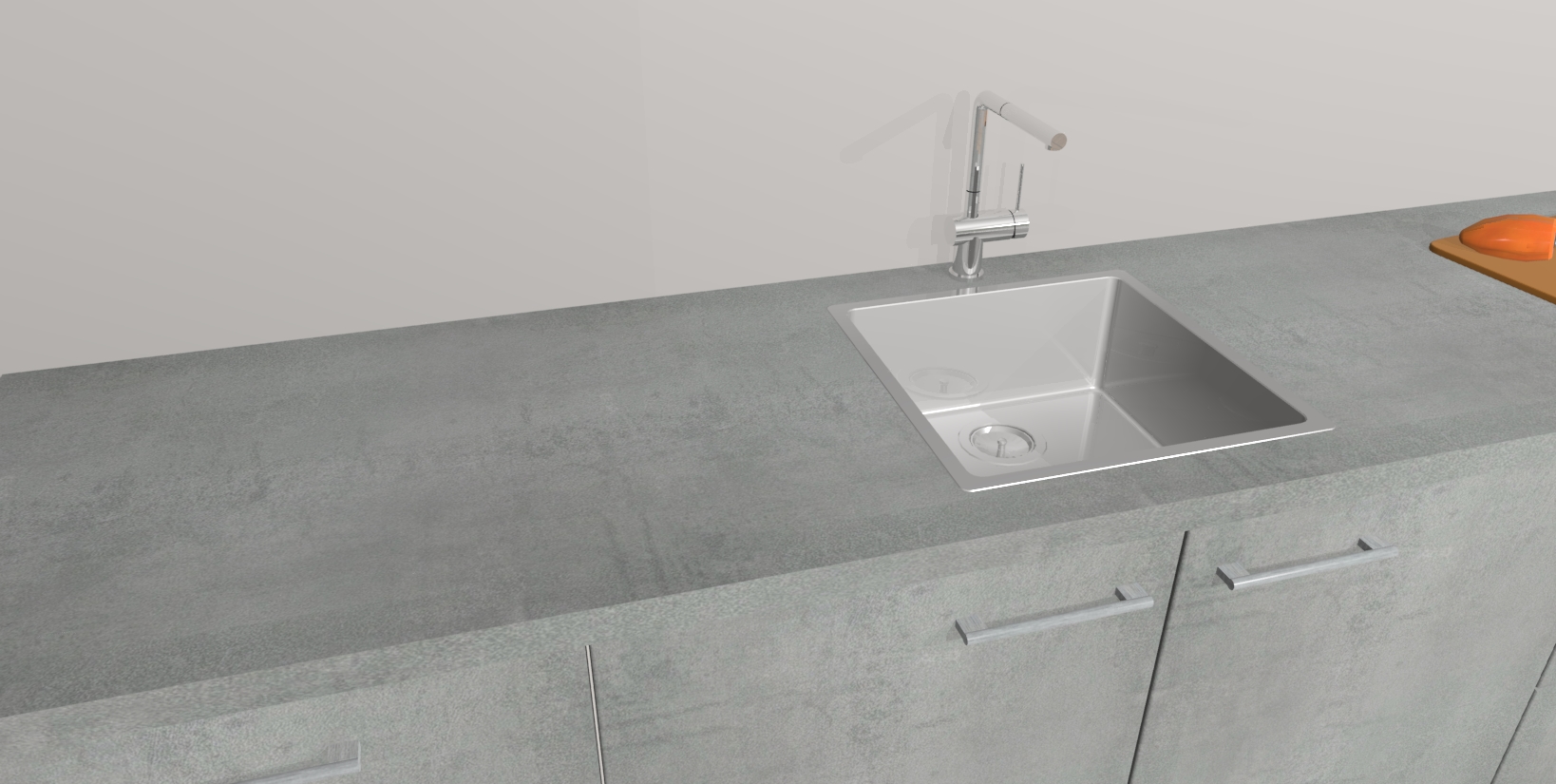 • De spoelbak is nog niet in gevreesd. Dit dient tijdens het werk gedaan te worden