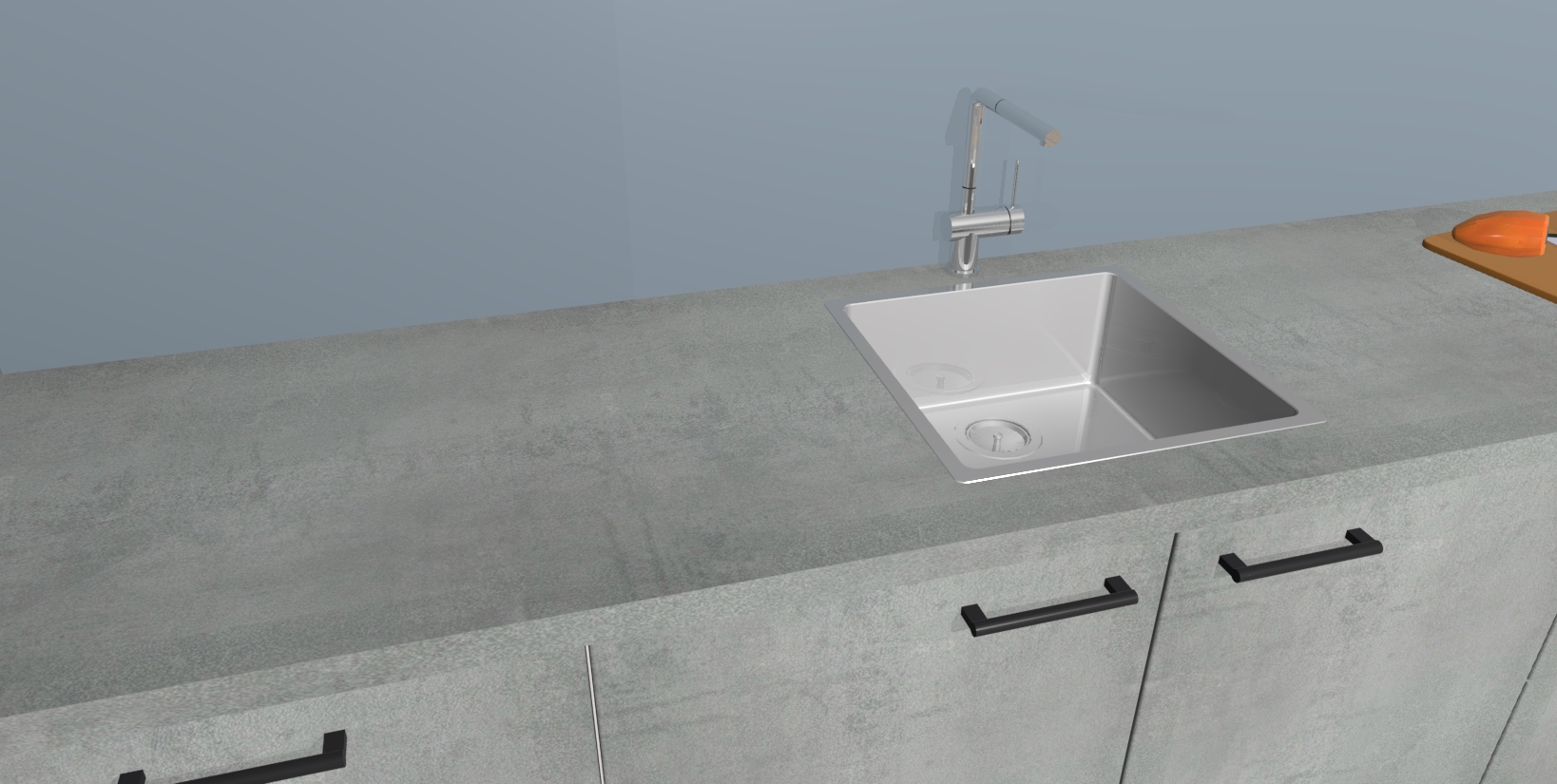 - De spoelbak is nog niet in gevreesd. Dit dient tijdens het werk gedaan te worden