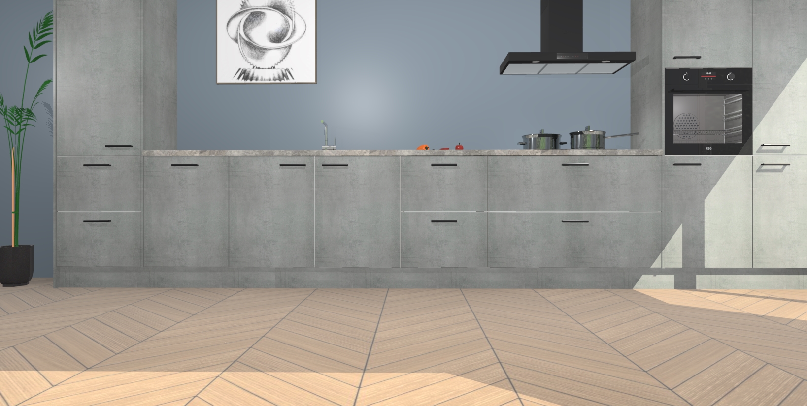 Inclusief plinten, stelpoten en werkblad