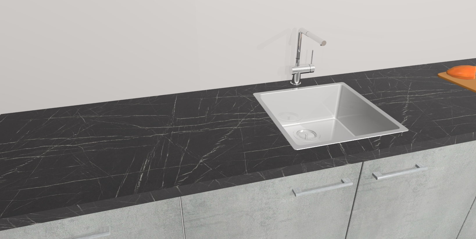 • De spoelbak is nog niet in gevreesd. Dit dient tijdens het werk gedaan te worden