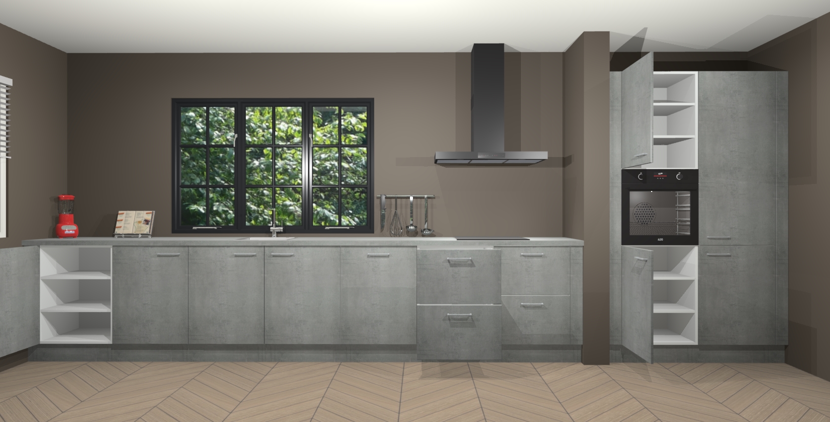 Maak kennis met de Beton parelgrijs keuken Elzas - de perfecte aanvulling voor uw moderne keuken! Ervaar tijdloos design, elegantie en een chique uitstraling met onze handgrepen, soft-close deuren en veel opbergruimte. Dit alles wordt aangeboden tegen een vaste lage prijs voor ongeëvenaarde Duitse keukenkwaliteit!