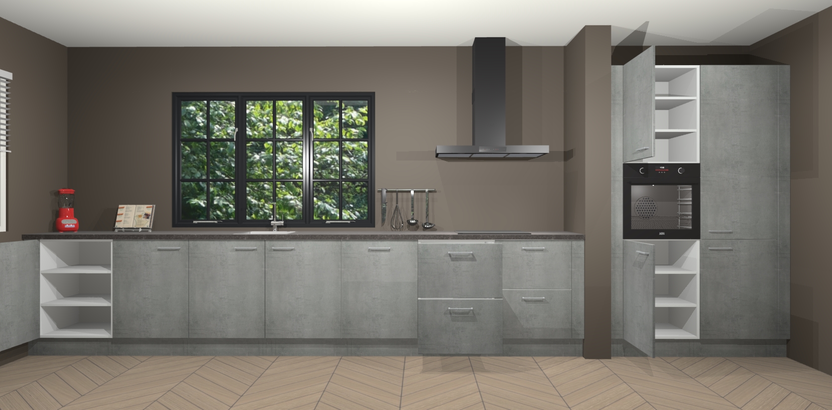 Maak kennis met de Beton parelgrijs keuken Elzas - de perfecte aanvulling voor uw moderne keuken! Ervaar tijdloos design, elegantie en een chique uitstraling met onze handgrepen, soft-close deuren en veel opbergruimte. Dit alles wordt aangeboden tegen een vaste lage prijs voor ongeëvenaarde Duitse keukenkwaliteit!