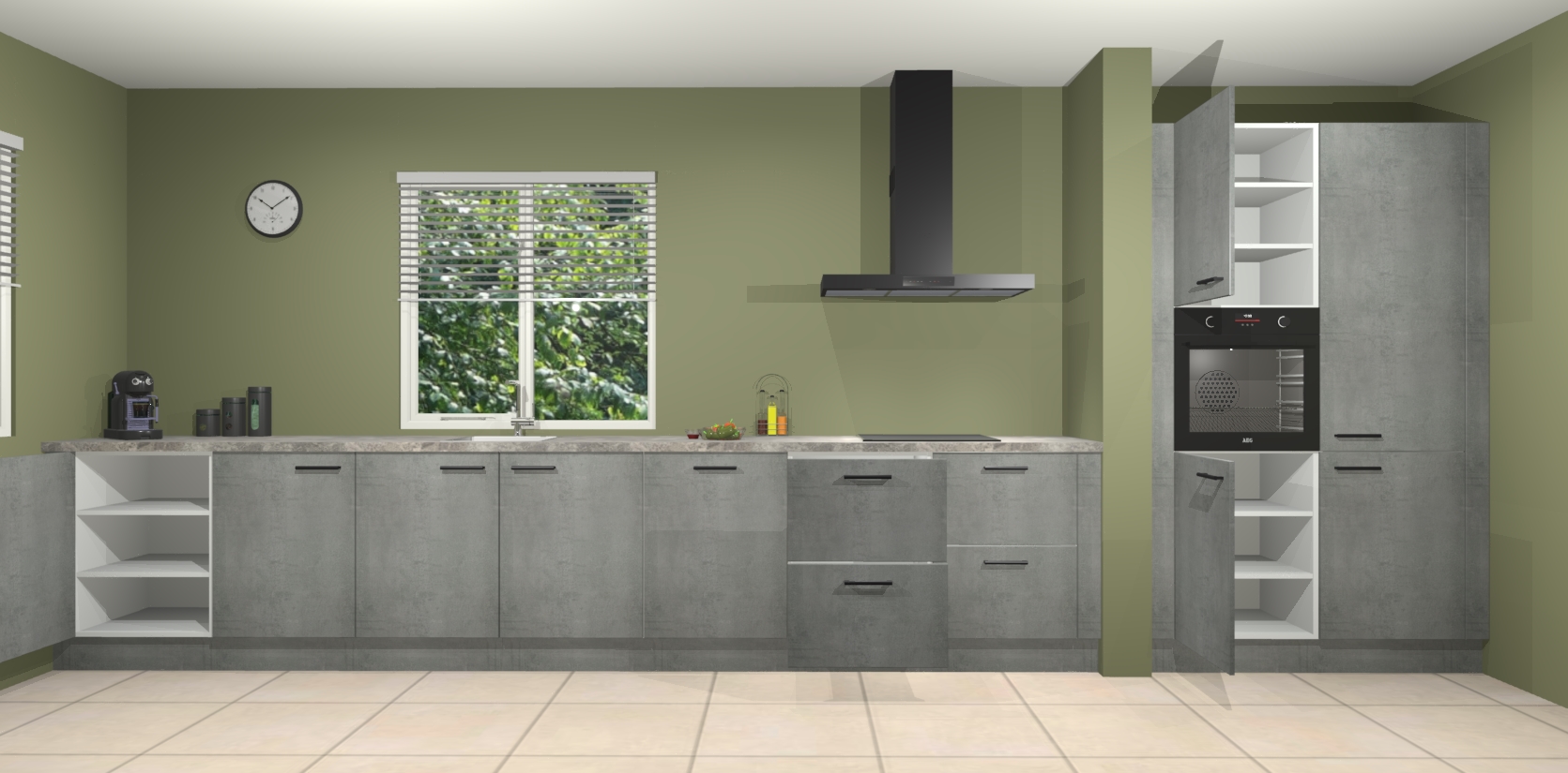 Maak kennis met de Beton parelgrijs keuken Elzas - de perfecte aanvulling voor uw moderne keuken! Ervaar tijdloos design, elegantie en een chique uitstraling met onze handgrepen, soft-close deuren en veel opbergruimte. Dit alles wordt aangeboden tegen een vaste lage prijs voor ongeëvenaarde Duitse keukenkwaliteit!