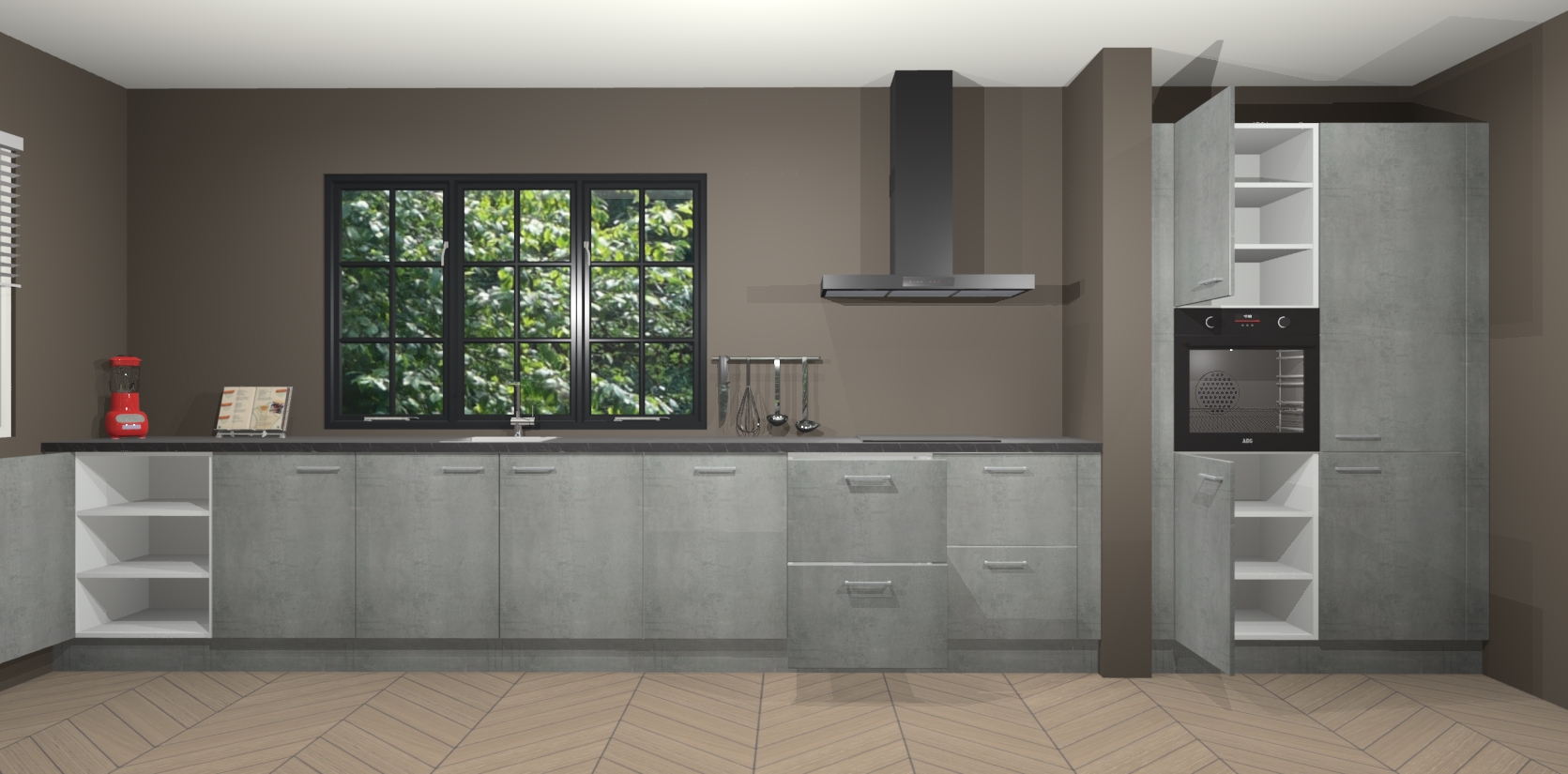 Maak kennis met de Beton parelgrijs keuken Elzas - de perfecte aanvulling voor uw moderne keuken! Ervaar tijdloos design, elegantie en een chique uitstraling met onze handgrepen, soft-close deuren en veel opbergruimte. Dit alles wordt aangeboden tegen een vaste lage prijs voor ongeëvenaarde Duitse keukenkwaliteit!