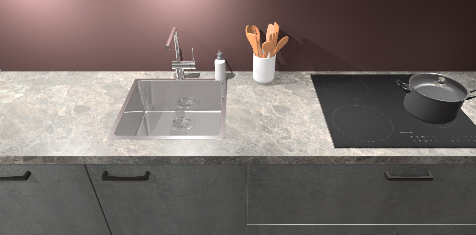 - Uitsparing van kookplaat, spoelbak en kraan dient u zelf te verzorgen.