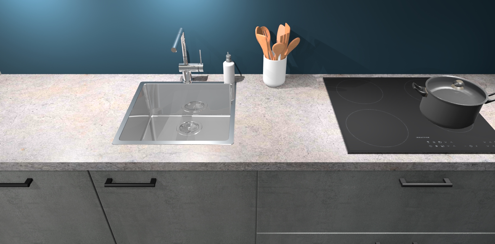 - Uitsparing van kookplaat, spoelbak en kraan dient u zelf te verzorgen.