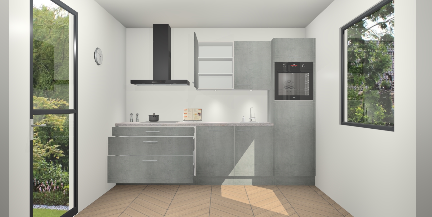 Inclusief plinten, stelpoten en werkblad