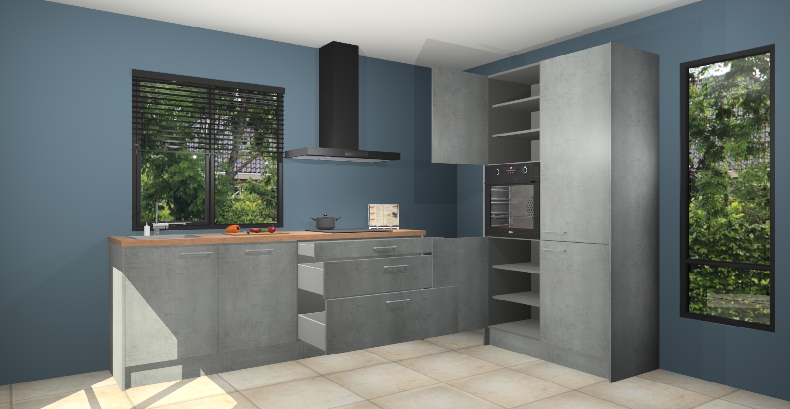 De setting is compleet gemaakt door de vijf inbouwapparaten: wanneer u gaat bestellen kunt u upgraden naar AEG-apparaten als oven, inductieplaat, afzuigkap, vaatwasser en koelkast. Kiest u voor onze Beton parelgrijs keuken Monaco, dan weet u zeker dat u te maken heeft met Duitse kwaliteit. Bovendien is er altijd sprake van een lage prijs en profiteren we aantrekkelijk leveringstermijn: die bedraagt slechts 7 weken ! Om het extra makkelijk te maken worden de keukenkasten reeds voorgemonteerd geleverd.
