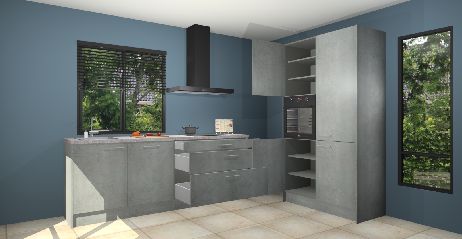 De setting is compleet gemaakt door de vijf inbouwapparaten: wanneer u gaat bestellen kunt u upgraden naar AEG-apparaten als oven, inductieplaat, afzuigkap, vaatwasser en koelkast. Kiest u voor onze Beton parelgrijs keuken Monaco, dan weet u zeker dat u te maken heeft met Duitse kwaliteit. Bovendien is er altijd sprake van een lage prijs en profiteren we aantrekkelijk leveringstermijn: die bedraagt slechts 7 weken ! Om het extra makkelijk te maken worden de keukenkasten reeds voorgemonteerd geleverd.