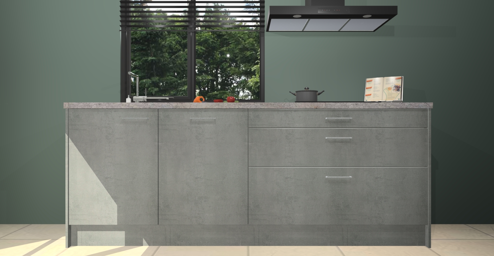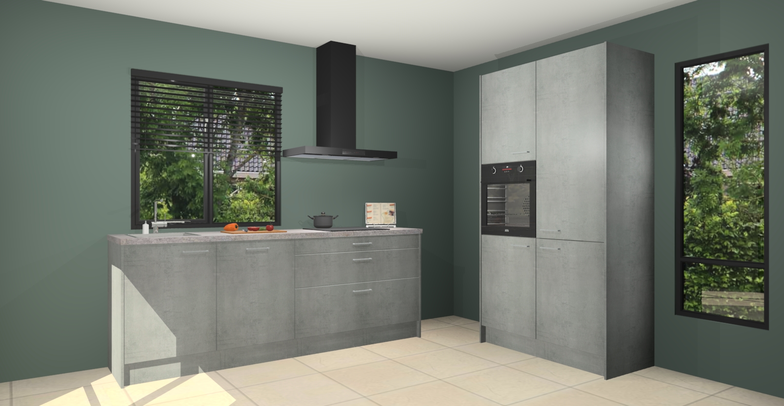 De setting is compleet gemaakt door de vijf inbouwapparaten: wanneer u gaat bestellen kunt u upgraden naar AEG-apparaten als oven, inductieplaat, afzuigkap, vaatwasser en koelkast. Kiest u voor onze Beton parelgrijs keuken Monaco, dan weet u zeker dat u te maken heeft met Duitse kwaliteit. Bovendien is er altijd sprake van een lage prijs en profiteren we aantrekkelijk leveringstermijn: die bedraagt slechts 7 weken ! Om het extra makkelijk te maken worden de keukenkasten reeds voorgemonteerd geleverd.